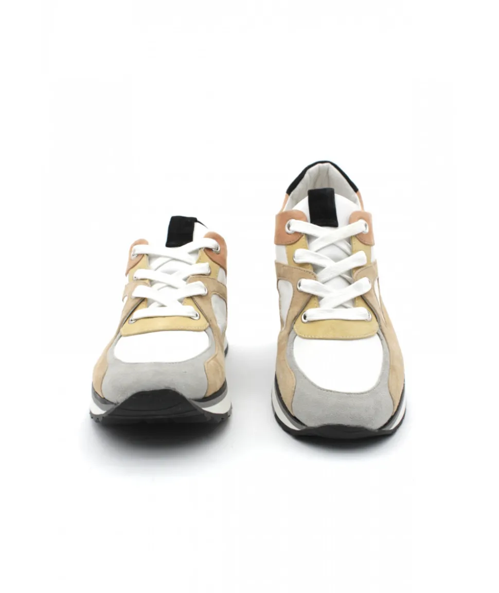 Nouvelle création pour la marque ADIGE avec sa dernière basket branchée XEFI. Dans un mélange de cuir velours nude, beige, gris et jaune cette sneaker ne manque pas d’originalité ! Nous on adore !