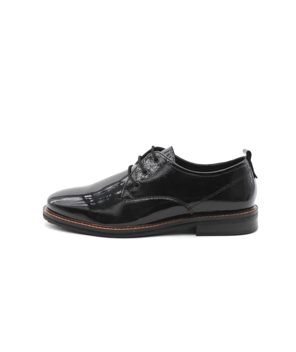 Élégant à regarder et doté d’un confort qui convaincra les femmes particulièrement exigeantes : la chaussure à lacets Kent 12-11202-11 vernis noir de la maison ara. Ce modèle, avec un cuir fin et un laçage discret, fait de cette chaussure légère et élégante fait quelque chose de très particulier. Le point fort absolu en matière de confort est la fonction Highsoft, une combinaison d’un dessus souple et d’une semelle avec un insert spécial en mousse au niveau de la plante du pied. Elle s’adapte parfaitement au pied et lui offre soutien et flexibilité grâce à l’accueil en douceur de la voûte plantaire. Le petit talon bloc résistant à l’écrasement dans une optique de couche de bois ainsi que la forme légèrement pointue allongent la jambe de manière raffinée. Avec sa largeur F, cette chaussure à lacets convient particulièrement aux femmes ayant un pied fin. Cette chaussure élégante avec sa couture décorative s’accorde parfaitement avec de nombreuses tenues et fait battre le cœur des femmes. Ce modèle ne dispose pas d’une semelle amovible.