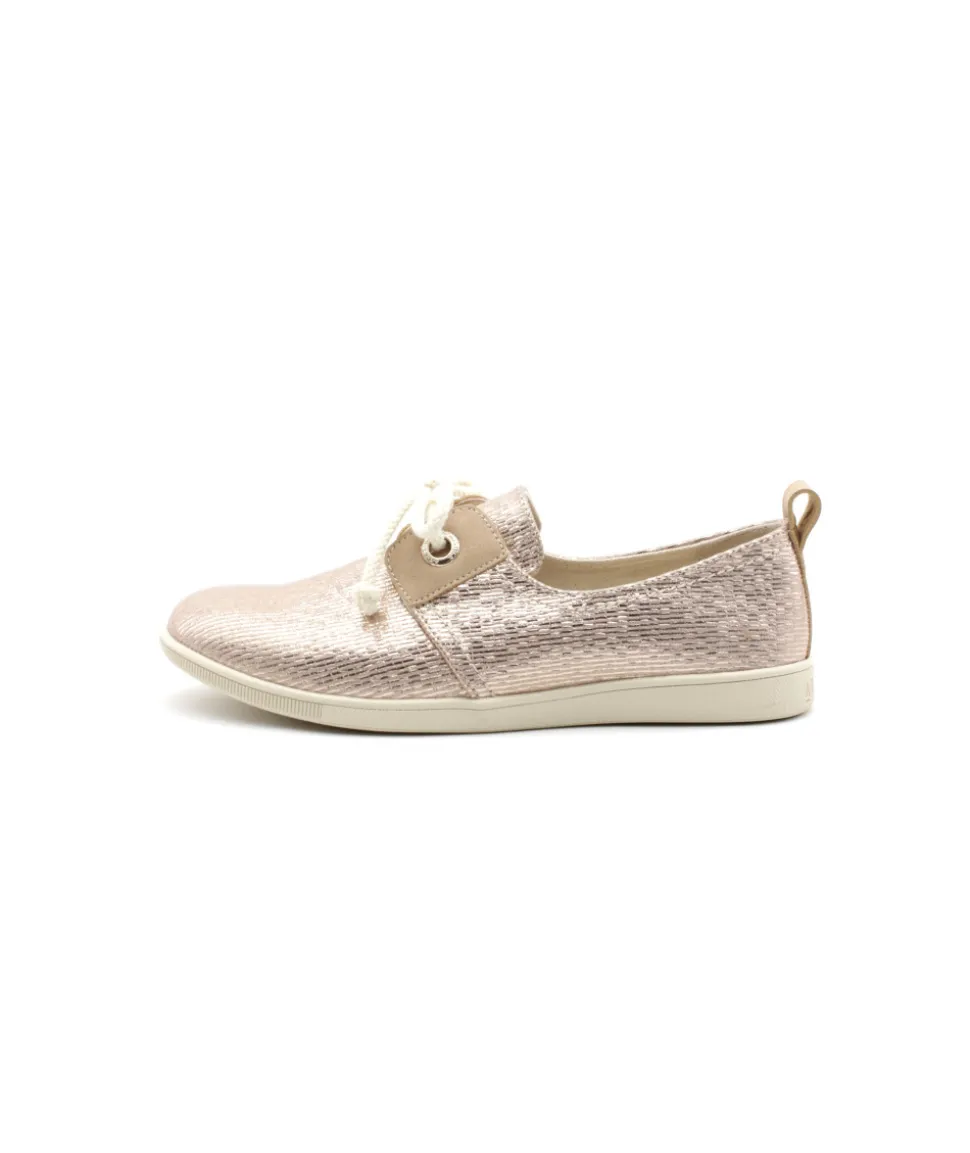 Armistice réinvente de nouveau sa petite tennis fétiche pour toujours plus d’originalité ! Cette fois la Stone One W Sun revête une toile métallisé couleur cuivre qui vous fera briller tout au long de la journée. Les lacets ronds apporte de la simplicité à la petite basket. On aime sa semelle plate et légère qui donne beaucoup d’aisance dans vos mouvements. Pas de doute c’est elle qui vous accompagnera tout l’été !