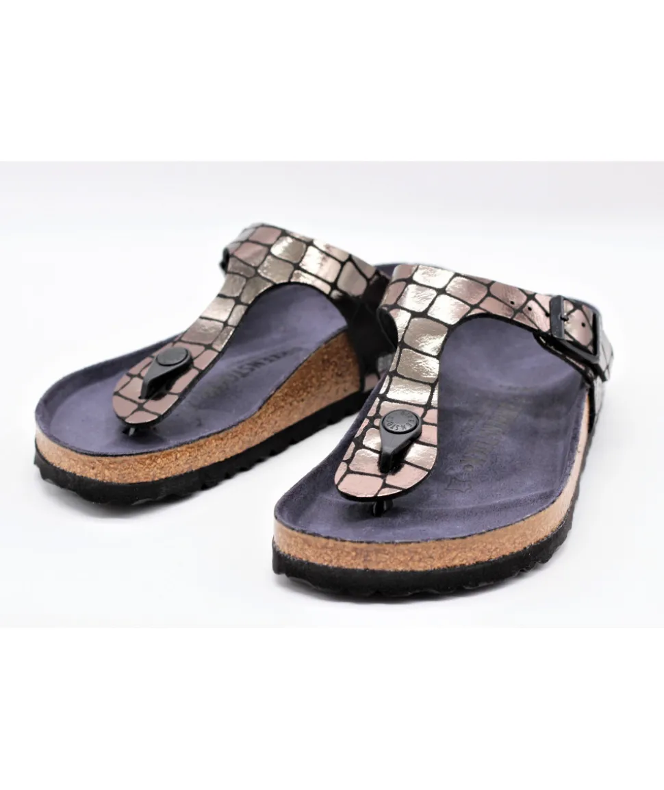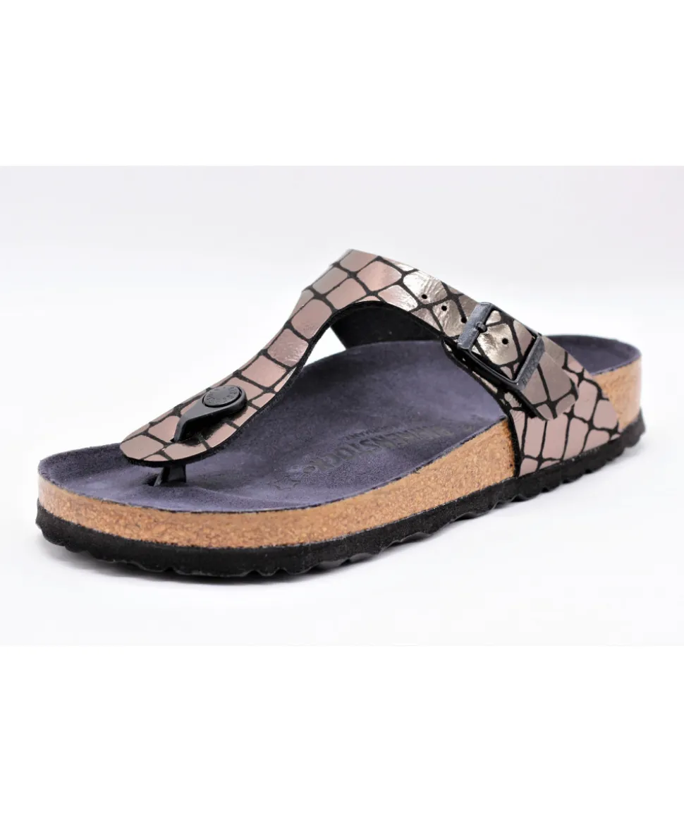 Femme L’Empreinte Chaussures BIRKENSTOCK GIZEH GATOR GLEAM BLACK
