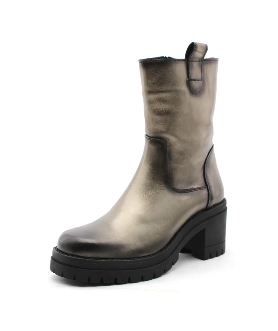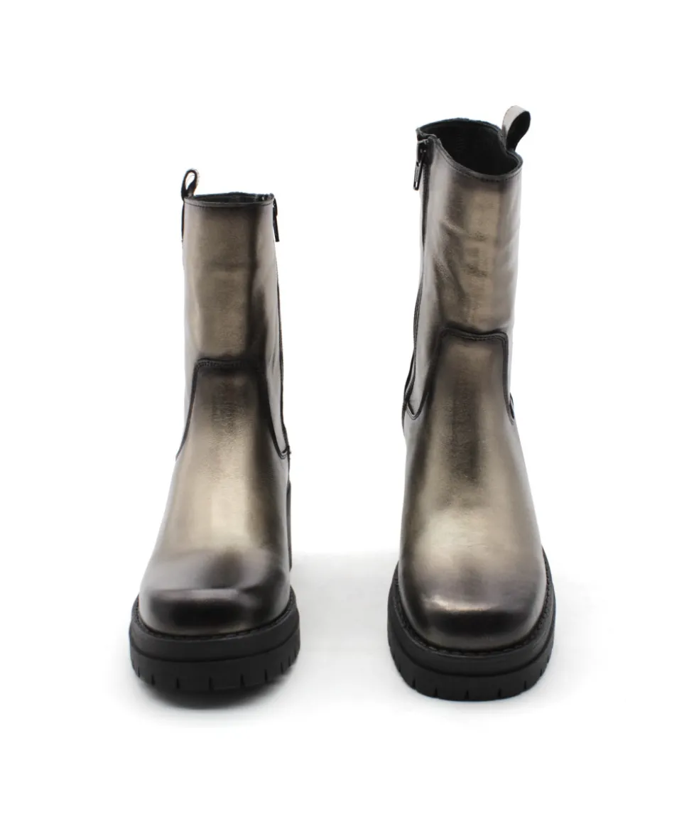 Coco & Abricot revient en force cette saison avec de nouvelles créations et voici PERIGUEUX V2639C en cuir métallisé taupe. Chic et élégante, cette bottine pour femme est l’accessoire a avoir dans son shoesing cet hiver. Sa jolie tige en cuir souple accompagné d’un zip pour la praticité s’associera facilement à vos robes, jupes ainsi que pantalons. Un look original et branché qui séduit les modeuses. Confortable et légère, elle est parfaite pour vous suivre toute la journée.