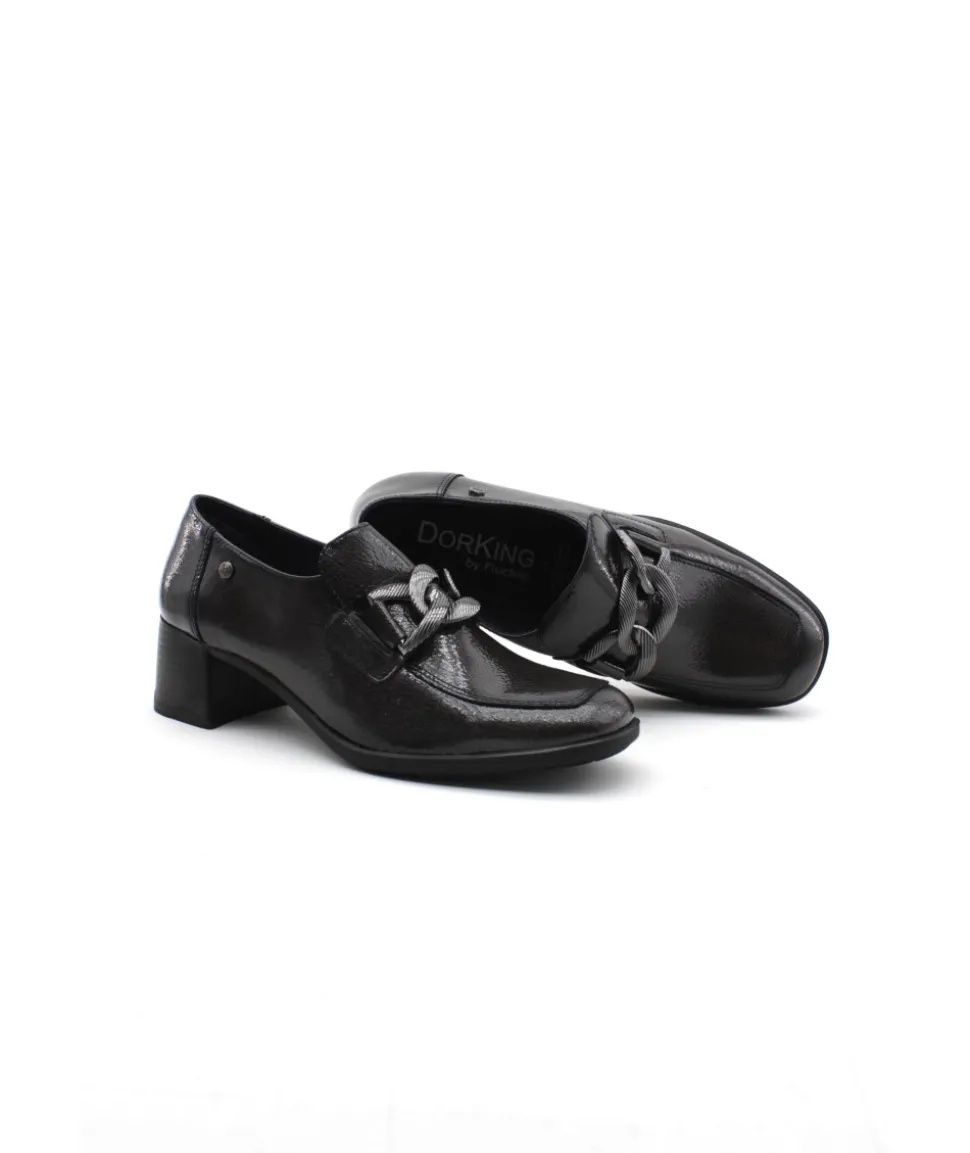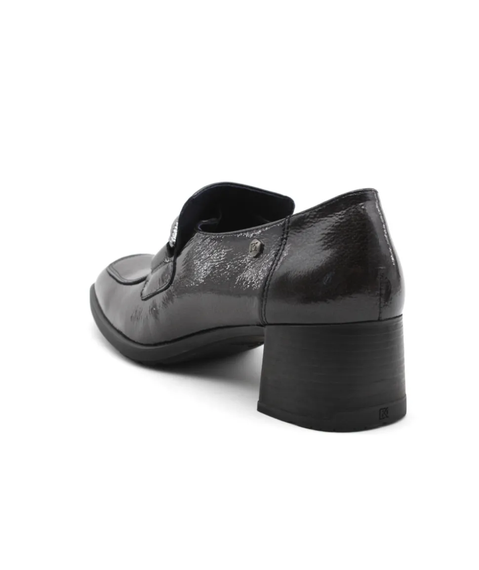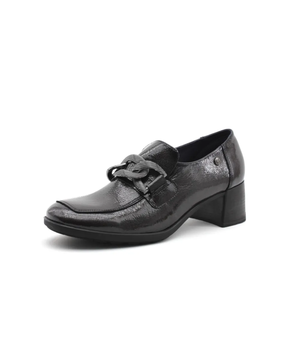 Une nouvelle forme fait son entrée dans la collection avec le mocassin à talon pour femme D9197 IKIA en cuir vernis ta…