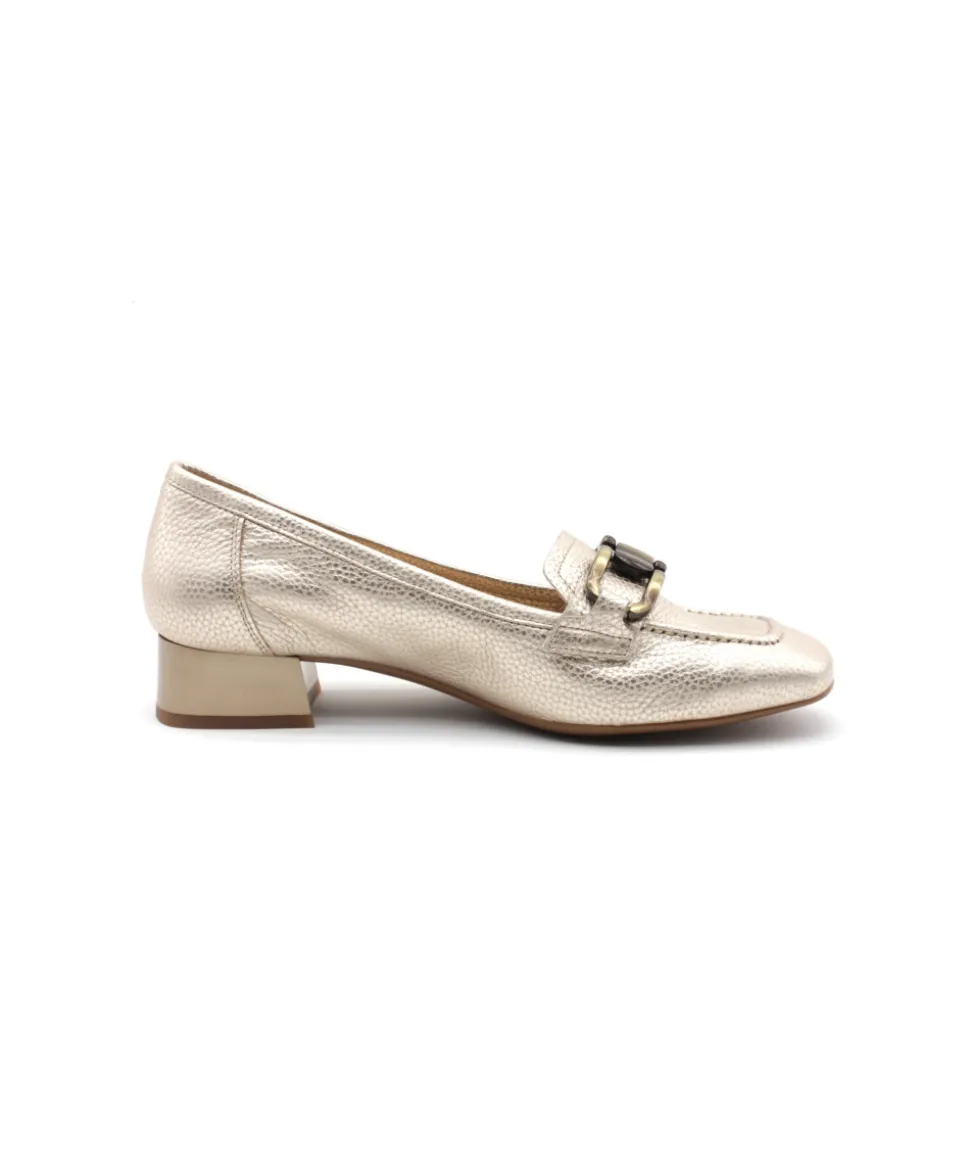 Une nouvelle arrivée dans la collection Dorking, le modèle D9303 GIA, un joli mocassin en cuir couleur platine. Idéale avec son petit talon de 3 cm très élégant, on aime l’association du cuir grainé platine avec son bijoux tendance sur le plateau. Une chaussure ultra confort à porter tous les jours et lors de vos sorties chics.