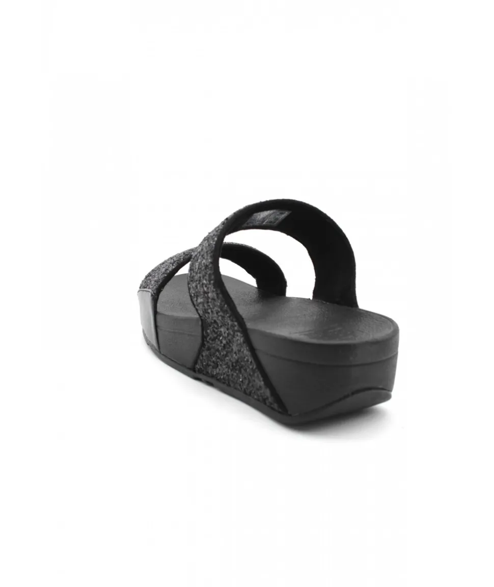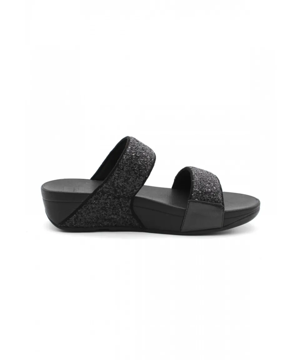 Forme incontournable chez FITFLOP, le modèle LULU GLITTER SLIDES et ses deux brides noires (ou platine) réglables ornées de paillettes pour un rendu chic et élégant sur une semelle ultra-légère.
