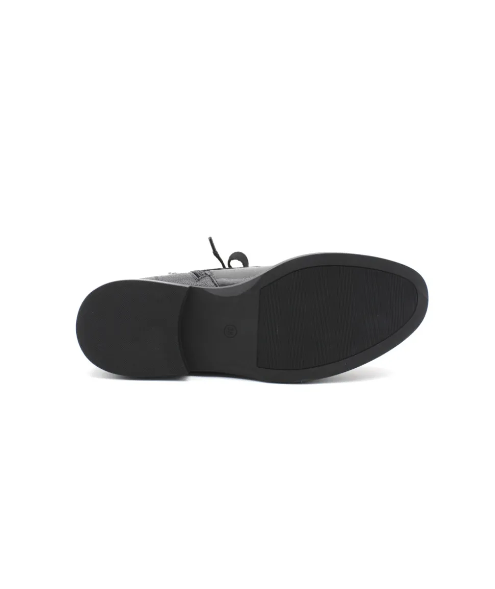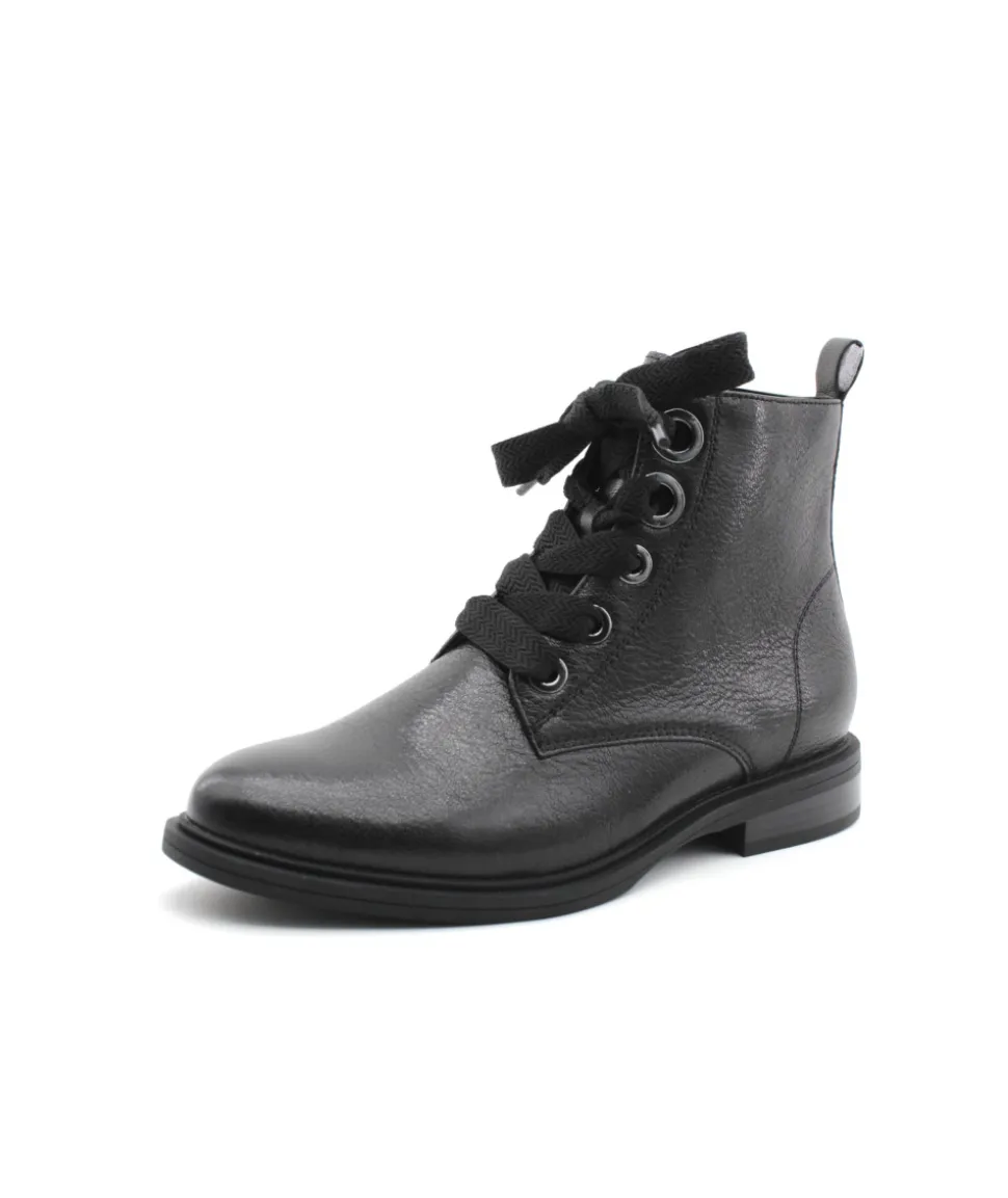 À la recherche d’une bottine confortable qui vous fera prendre un peu de hauteur ? La création FEUTRE revient cette saison dans un superbe cuir vernis noir avec ses détails argentés. Chic et tendance avec ses oeillets imposant et son lacet plat, cette boots vous comblera de bonheur par sa cambrure parfait et son petit talon de 3 cm. Son originalité et son look atypique ne vous fera pas passer inaperçu.