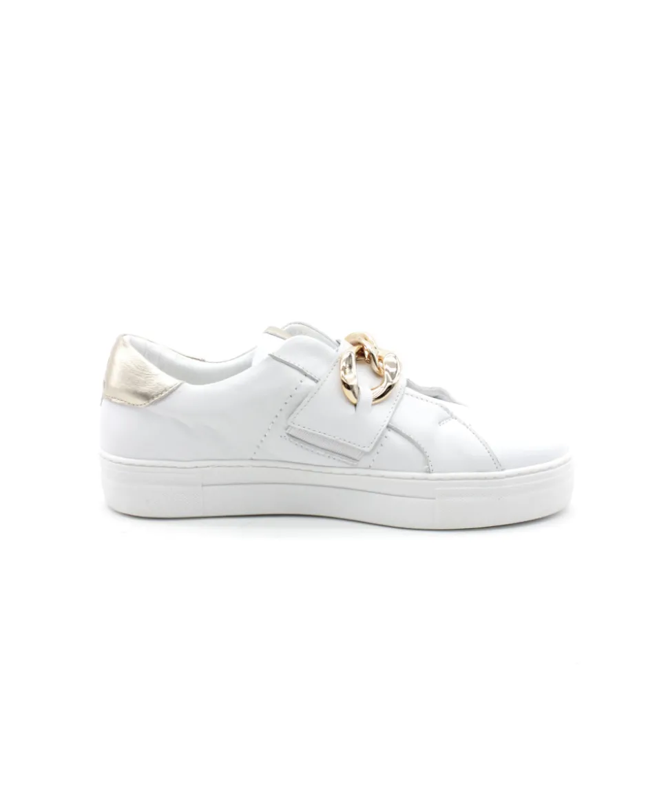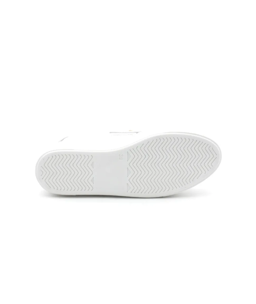 À la recherche d’une sneakers originale et tendance ? Fugitive, maison française reconnue pour ses créations moderne vous dévoile sa dernière création, MUCIA en cuir blanc et or. Montée sur une semelle compensée de 3 cm, elle laisse de côté le traditionnel lacet pour un velcro habillé d’un bijoux à la mode. Avec son look audacieux, elle sera la star de votre shoesing, alors n’attendez plus !