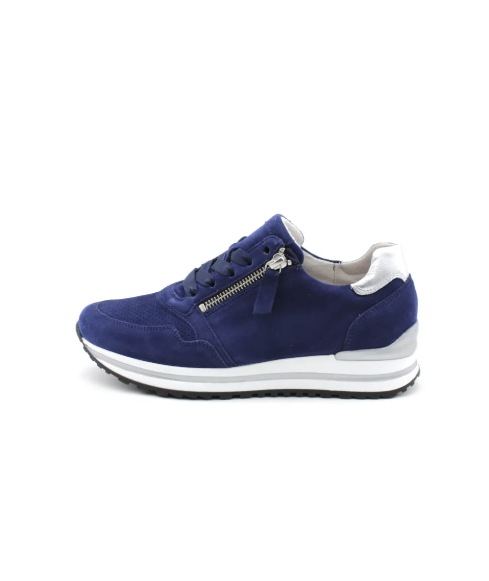 À chaque femme sa paire de basket. Cette fois, nous vous présentons la nouvelle GABOR 26.528.36 en cuir velours bleu marine accompagnée de touches argentées. Chic et élégante, cette paire de sneaker confortable se montre à l’aise dans toutes les situations grâce à son épaisse semelle en gomme qui offre un bon amorti lors de la marche. Son lacet viendra s’ajuster à votre pied tandis que son zip de fermeture vous facilitera l’enfilage. Plus de doute, c’est la paire qu’il vous faut !