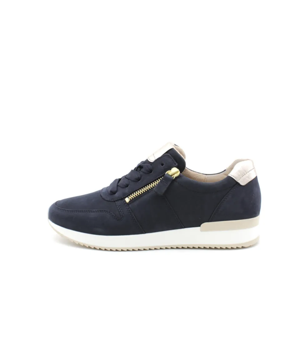 La maison allemande GABOR nous dévoile sa dernière création, le modèle 43.420.11 dans son coloris bleu marine vous fera craquer par sa légèreté et son confort de marche. Avec une semelle amovible, un zip de fermeture de chaque côté et un lacet, ces sneakers sport chic deviennent le modèle pratique et tendance qu’il vous faut !