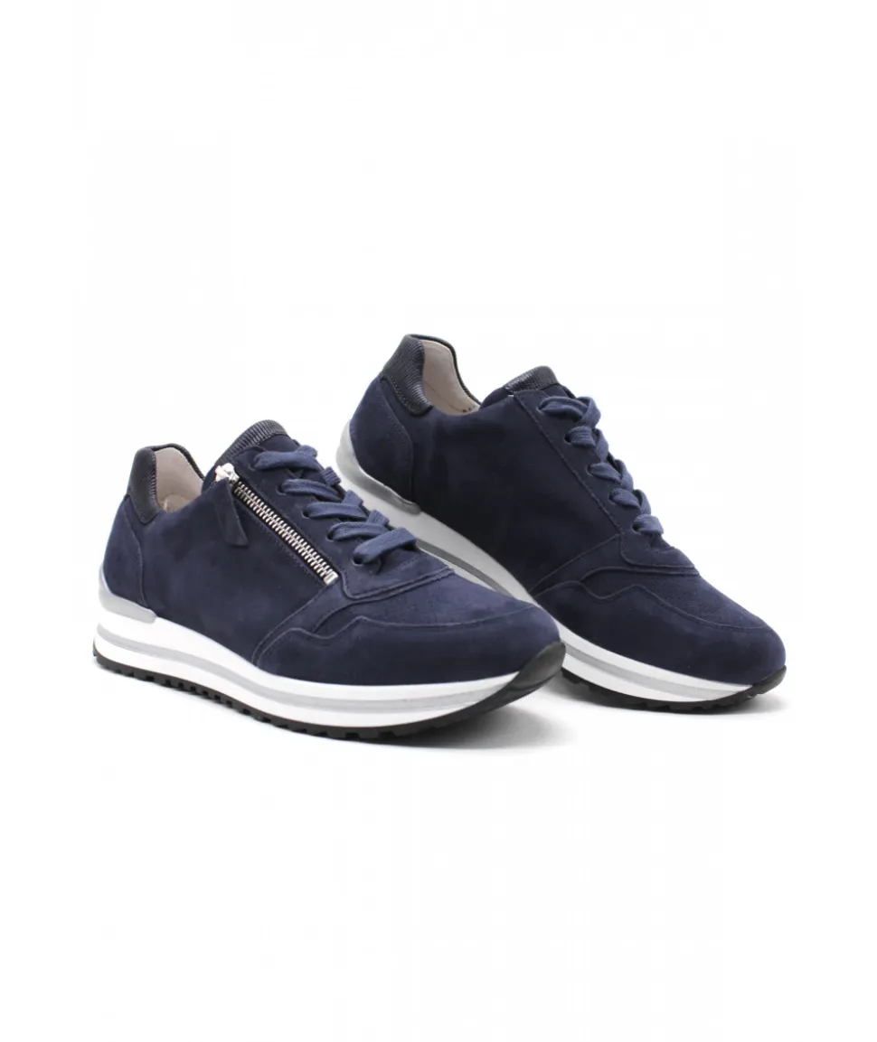 La maison allemande GABOR nous dévoile sa dernière création, le modèle 86.528.26 dans son coloris bleu marine vous fera craquer par sa légèreté et son confort de marche. Avec une semelle amovible, un zip de fermeture et un lacet ces sneakers sport chic deviennent le modèle pratique et tendance qu’il vous faut !