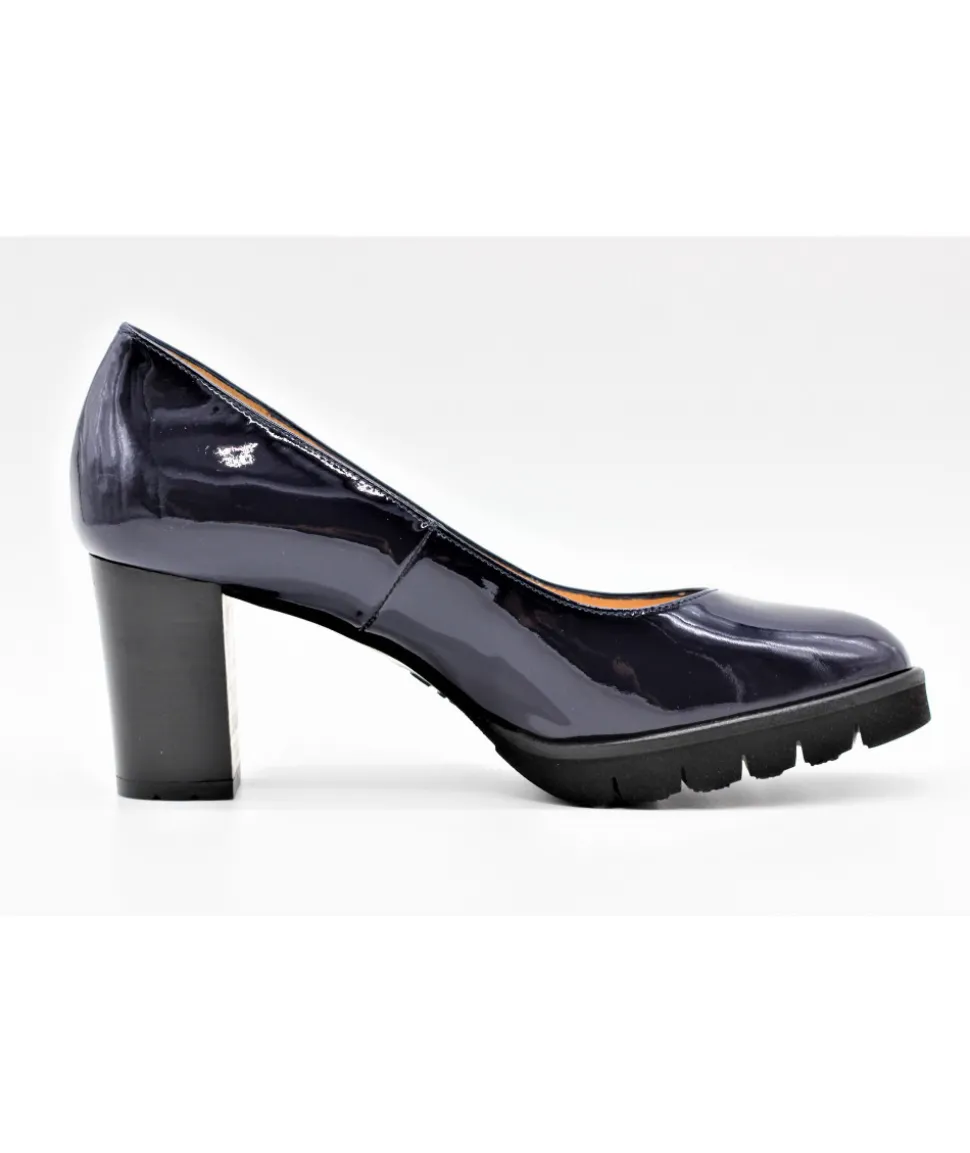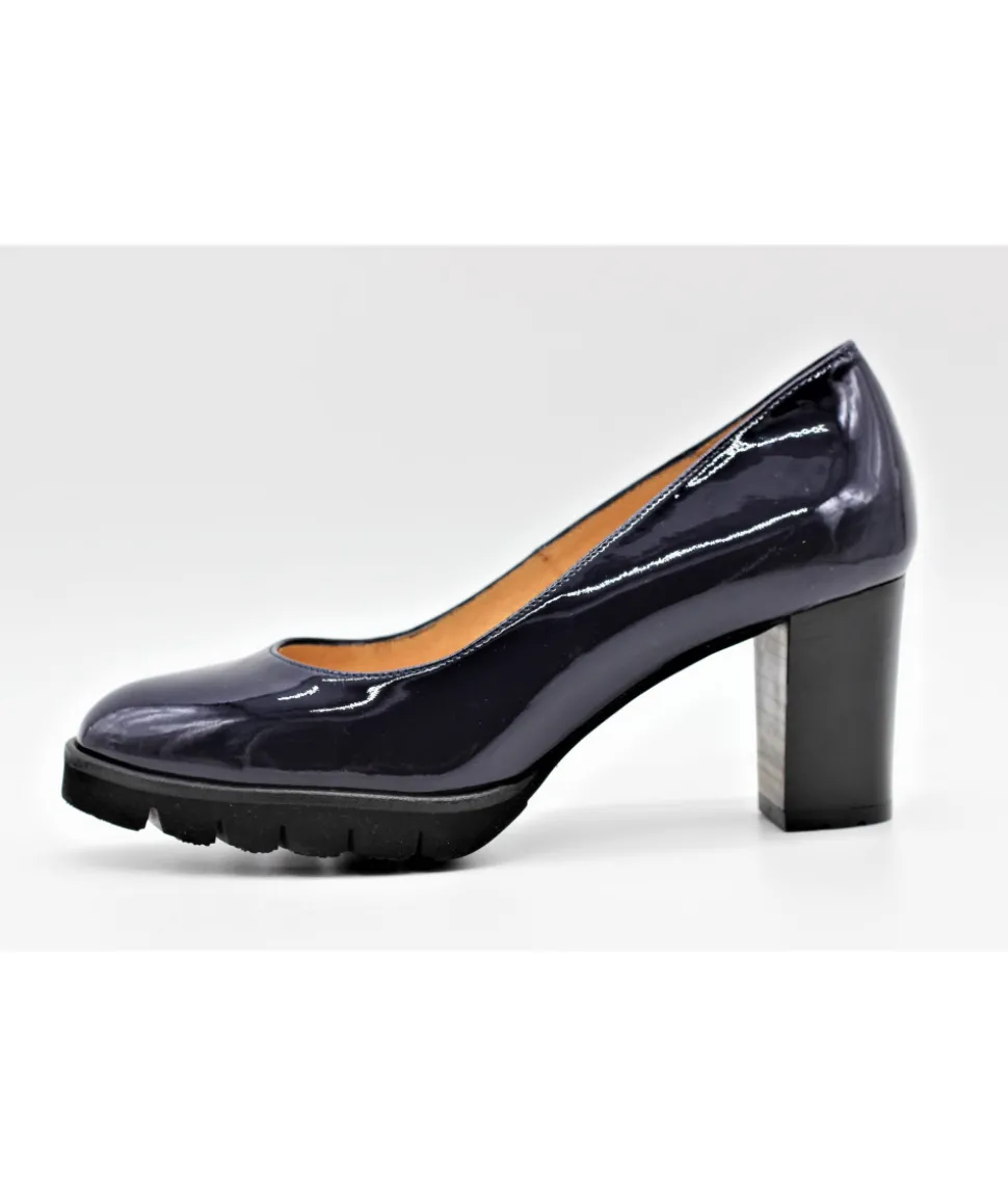 Dessus : Cuir vernis bleuDoublure : CuirSemelle extérieure : XL ExtralightTalon : 7 cm – plateau 1.5 cmFABRICATION ES…