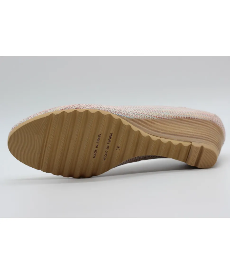 Dessus : Cuir imprimé Bayadère CORAILDoublure : CuirSemelle extérieure : GommeTalon : Compensé 5.5 cmFABRICATION ESP…