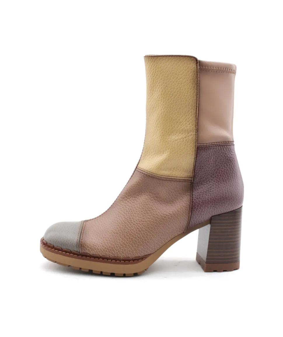 Hispanitas fait son retour dans la collection L’Empreinte. Cette marque espagnole nous dévoile son savoir-faire avec cette magnifique bottine CHI222222 en cuir multi-couleur taupe et amande. Originale par son patchwork de couleur et ses empiècements en cuir, cette bottine se distinguera du reste de vos chaussures. À porter sans modération, vous ne pourrez plus vous passer de son cuir souple et de son talon de 7 cm qui offre une superbe cambrure.