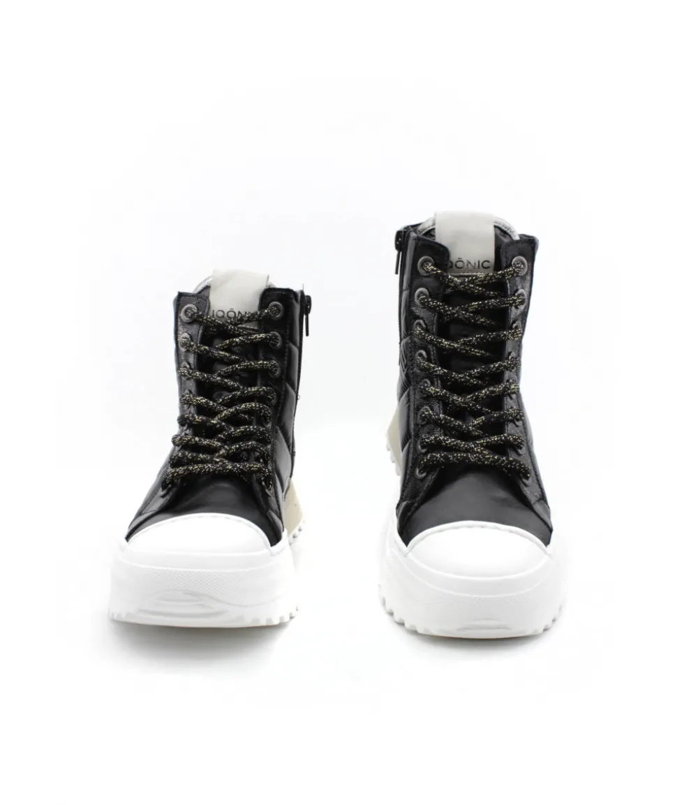 La marque Iconiq fait son apparition dans notre collection. Cette saison, la marque réinvente la basket montante avec un look ultra-tendance en cuir blanc et noir. Dessiné en France et fabriqué à la main au Portugal, ces sneakers mélanges les matières et les couleurs pour un rendu à couper le souffle. Ses lacets et son zip vous permettrons d’ajuster la chaussure à votre pied tandis que sa semelle compensée vous offrirons tout le confort souhaité. Son style inimitable vous rendra tout simplement… IQONIC.