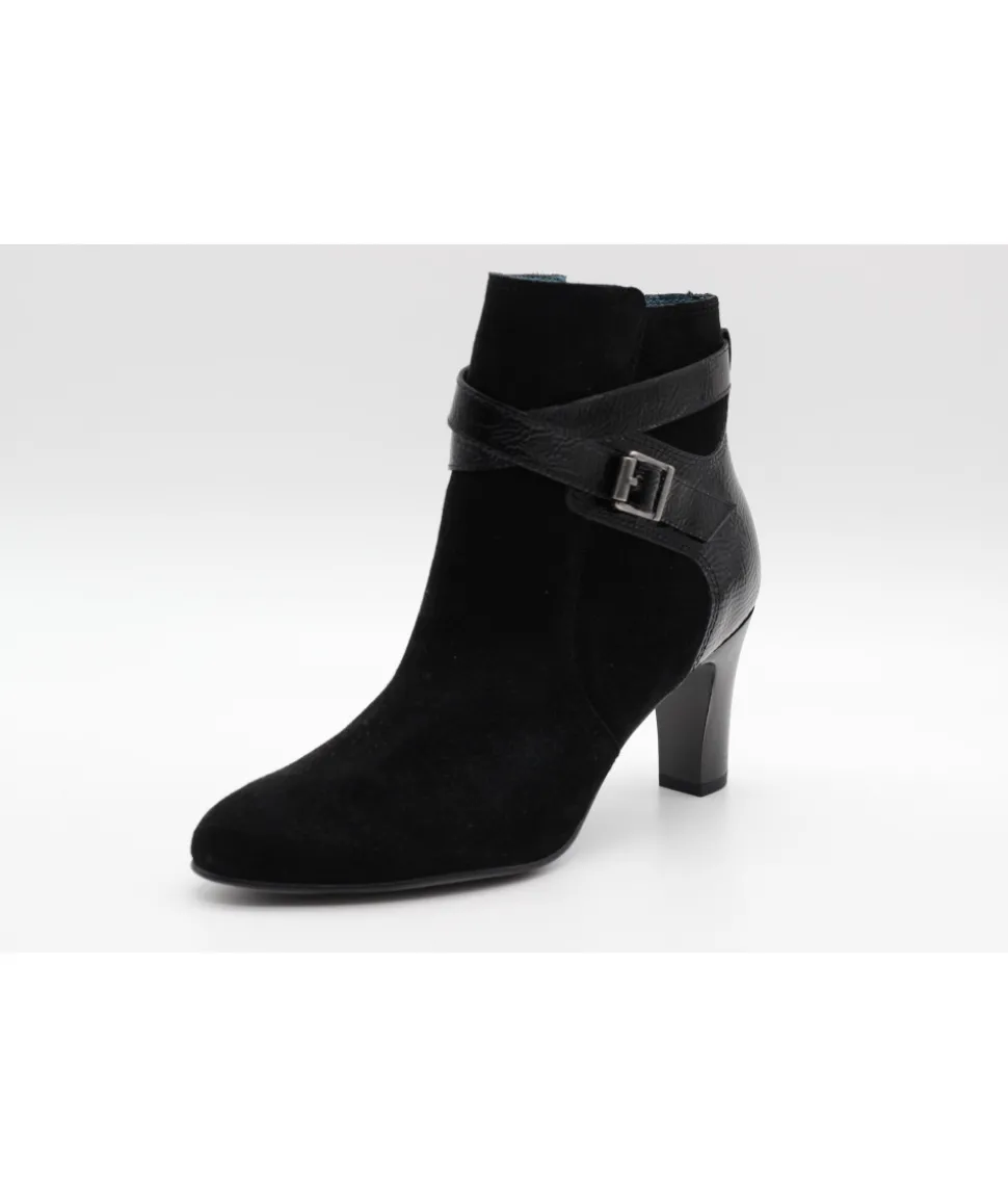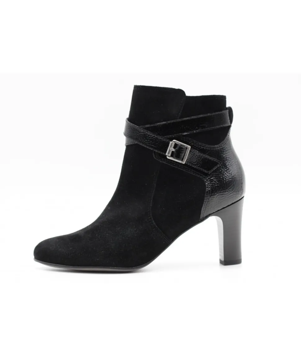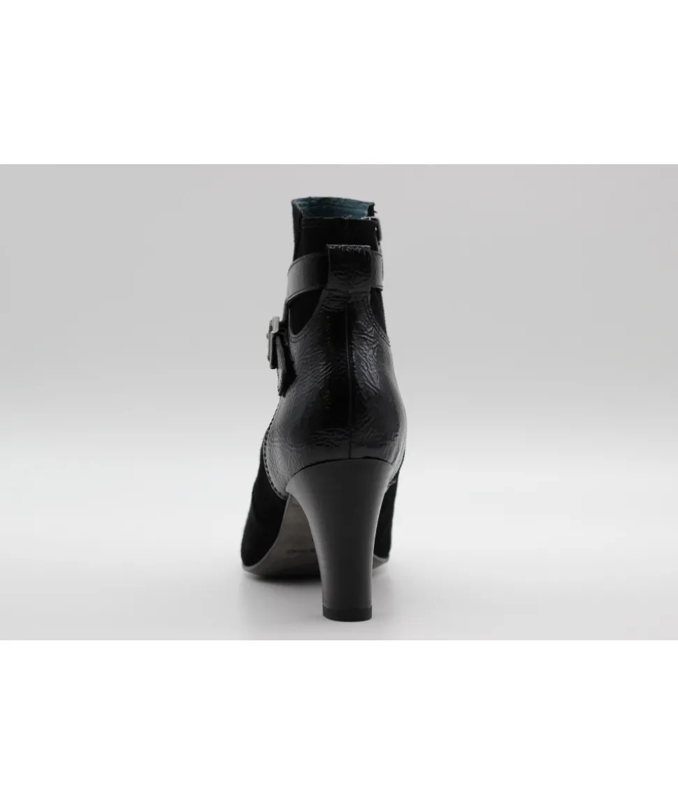 Dessus : Cuir Velours NOIR et Vernis NOIRDoublure : CuirSemelle extérieure : ElastomèreTalon : 7.5 cmFABRICATION FRA…