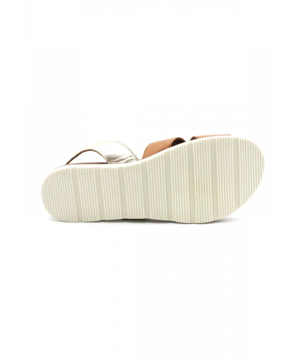 Nu-pieds en cuir BLANC ET CAMEL proposé par la marque Portugaise LUNE et L’AUTRE. Il s’ajuste par une bride à boucle sur l’arrière du pied. Une semelle caoutchouc blanche très confortable vient compléter cette sandale.
