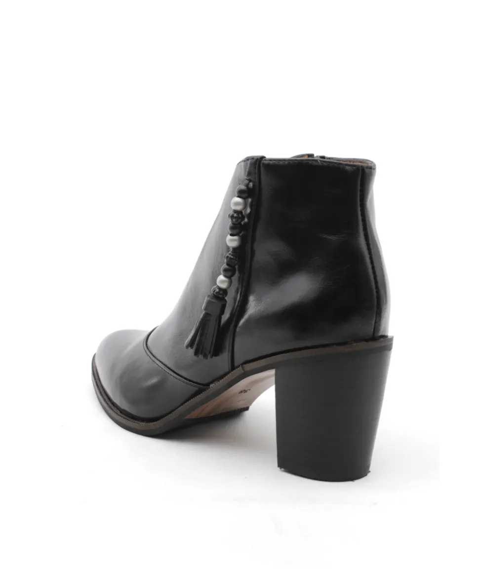 À la recherche d’une jolie bottine pour l’hiver ? Voici la nouvelle indispensable de chez Mamzelle NATAX en cuir noir. Une frange habillée de perles s’empare de la tige pour offrir un look moderne tandis que sa coupe « décolté » vous apporte un réel confort lors de la marche. Son zip quant-à lui vous facilitera l’enfilage. Légère, souple et pratique, cette boots se classe directement dans nos coups de coeur à porter à chaque occasion.
