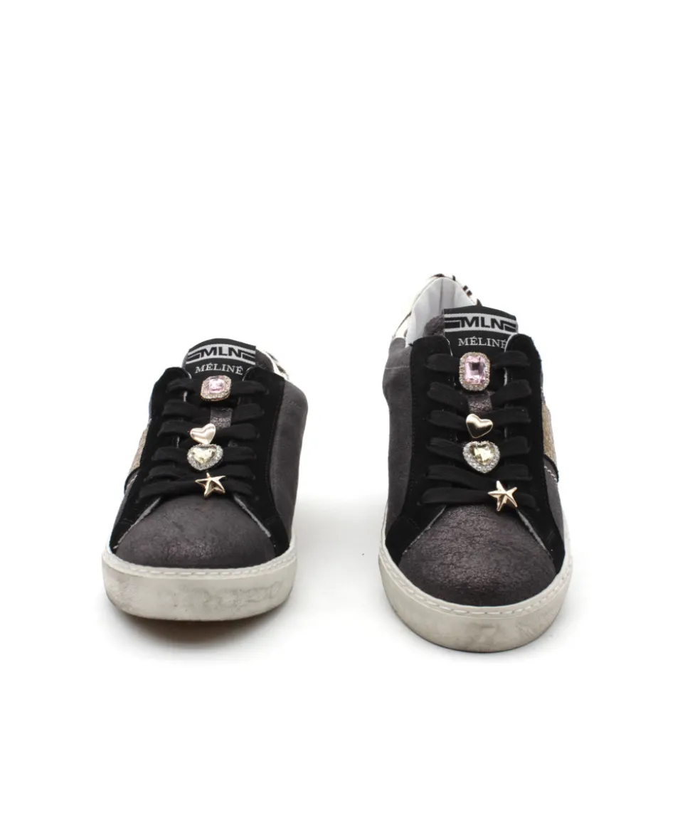 La maison italienne MELINE fait son retour cette année avec de nouvelles créations toujours plus originales ! Et voici le modèle NKC 16/8136 en couleur noir. Une basket sport / chic pour tous les jours avec un superbe mélange de matières et de couleurs que seul les meilleures marques sont capables de produire. Avec des empiècements noirs, dorés et zèbres, cette sneaker pourra facilement s’associée à vos tenues. On aime également le soin des détails apportés et la qualité de finition italienne !