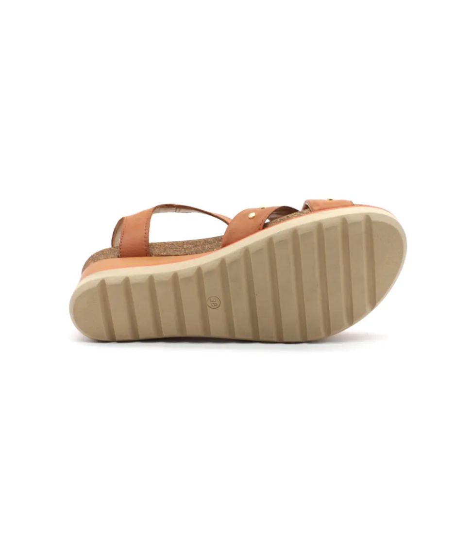 Des empiècements en cuir cannelle ou noir de qualité, une bride cheville pour un bon maintien, une semelle compensée pour le confort et des clous dorés pour un look unique. C’est tout cela réuni qui rend ces sandales pour femme aussi belle que tendance.