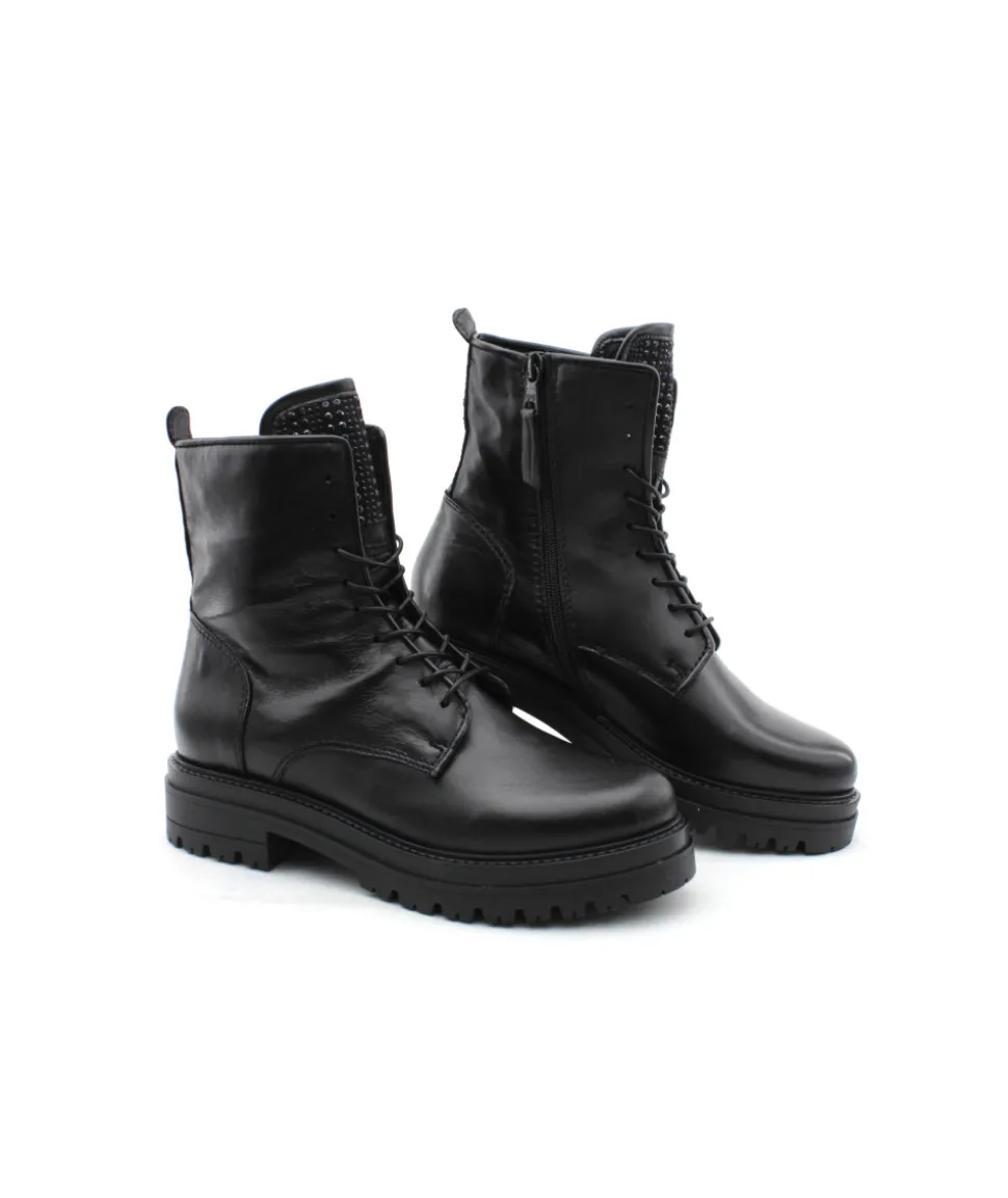 Immanquable de la collection, Mjus revient cette saison avec cette jolie bottine pour femme en cuir noir. Le modèle P82206 s’équipe d’une semelle épaisse en gomme pour un confort accru, d’un lacet pour un serrage optimal et d’un zip intérieur pour plus de praticité lors de l’enfilage ! Rien de mieux pour affronter l’hiver et garder les pieds au chaud grâce à sa doublure en textile recyclé. On aime les bijoux sur le haut de la languette qui affirme un look plus féminin.