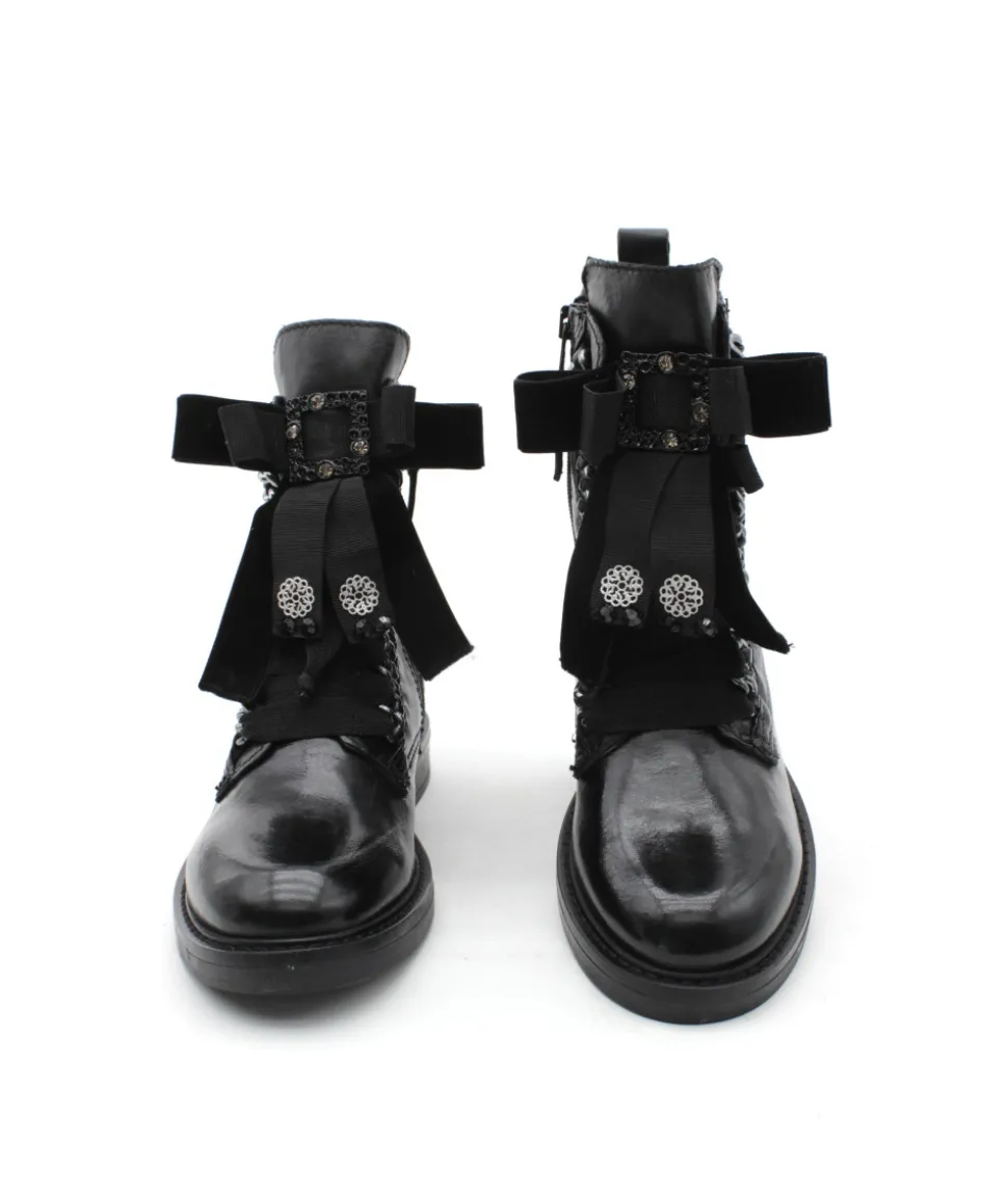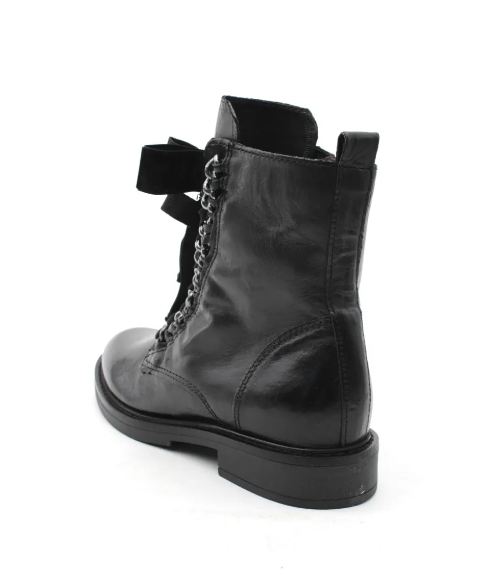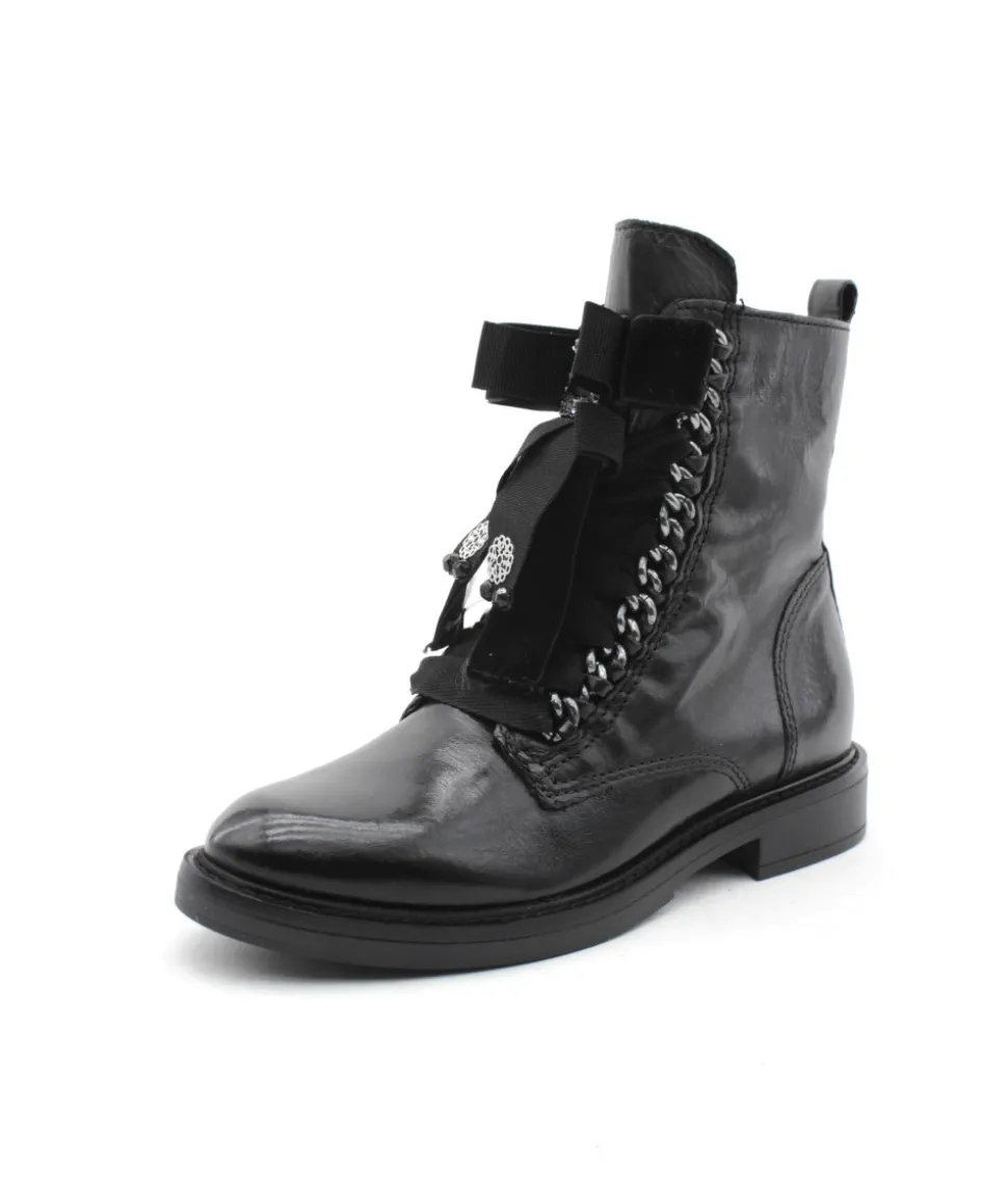 Immanquable de la collection, Mjus revient cette saison avec cette jolie bottine pour femme en cuir noir. Le modèle T81204 s’équipe d’une semelle en gomme pour un confort accru, d’un lacet plat ultra original avec des passants argentés, d’un noeud papillon féminin ainsi que d’un zip intérieur pour plus de praticité lors de l’enfilage ! Rien de mieux pour affronter l’hiver et garder les pieds au chaud. On aime l’élégance et l’originalité de ce modèle que vous pourrez associer à chacune de vos tenues.
