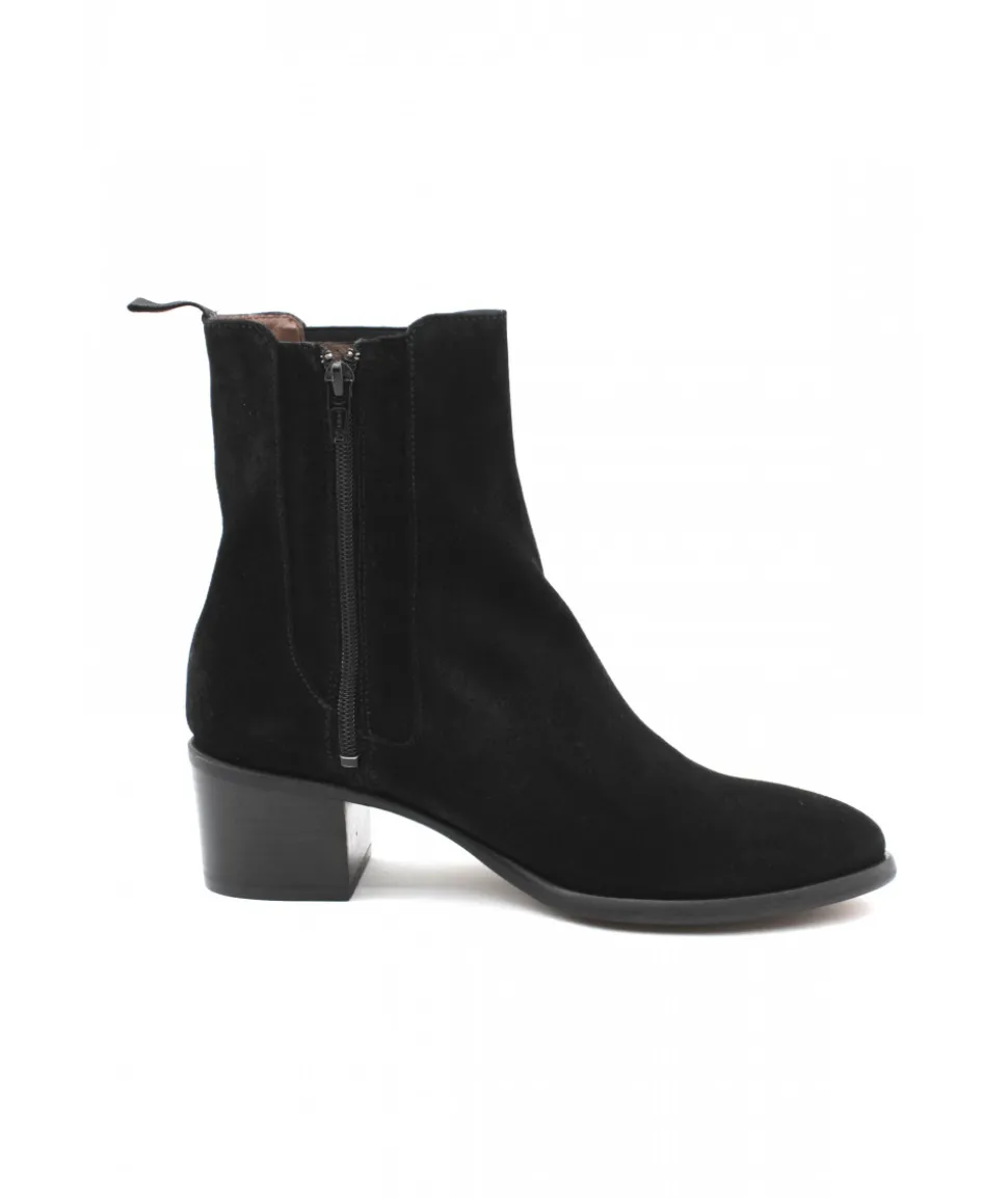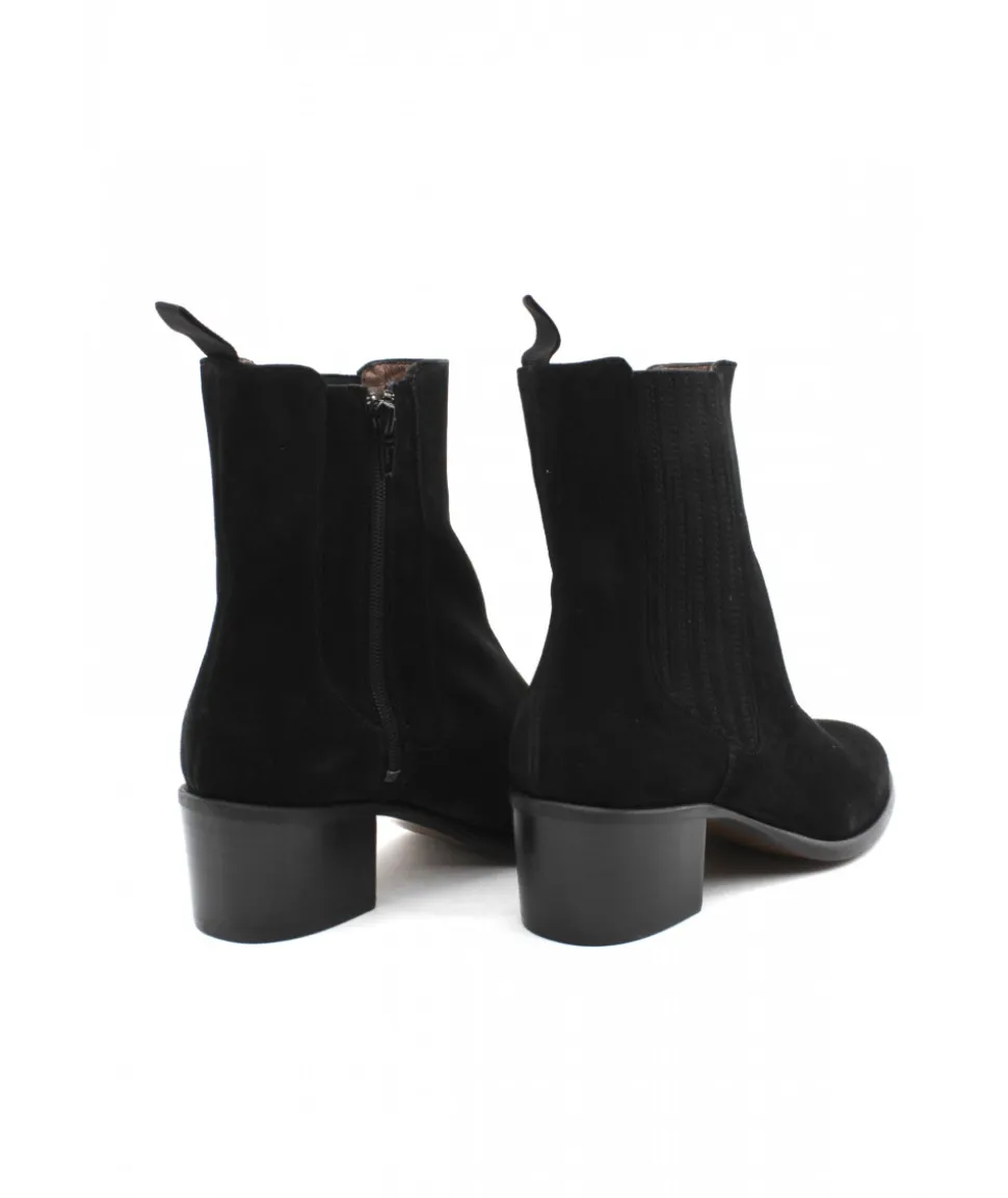 La marque Muratti est de retour cette saison avec cette sublime boots à talon décroché. ROCQUEFORTS S1084F se décline en cuir velours noir pour un look moderne, féminin et ultra-tendance. Son talon de 5 cm vous fera prendre de la hauteur en vous offrant une cambrure idéale pour la journée, tandis que sa tige élastiquée maintiendra votre cheville dans la chaussure.
