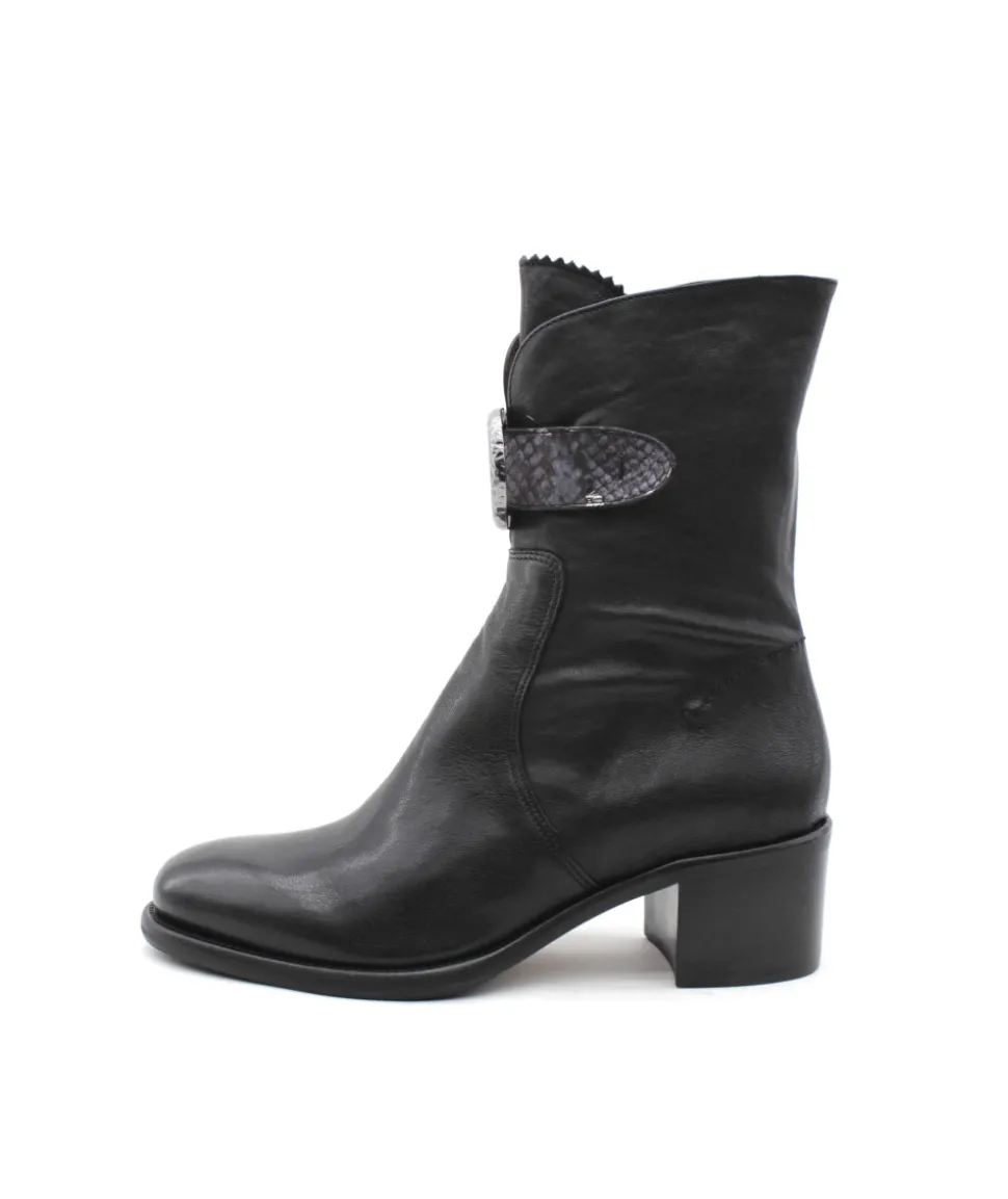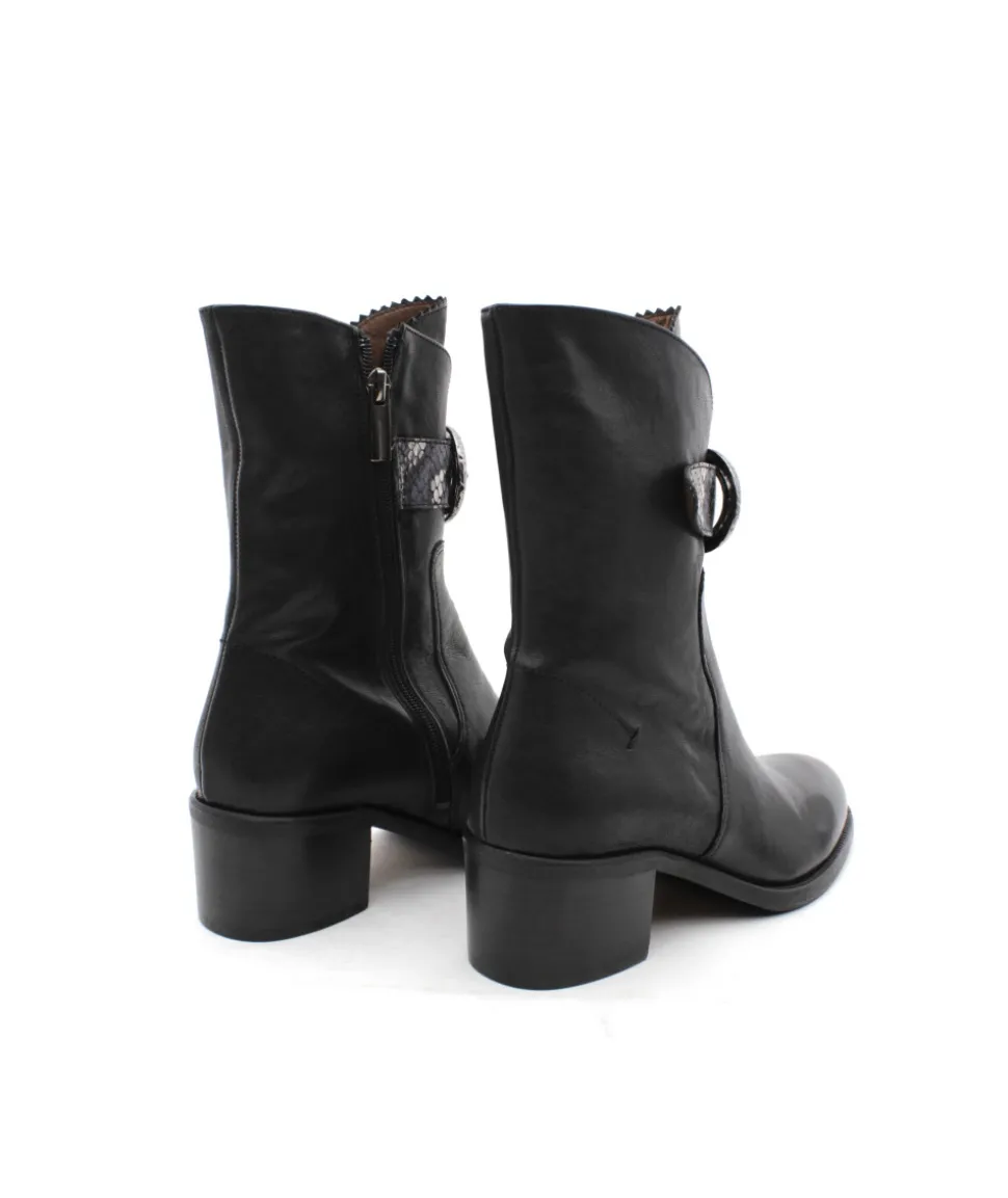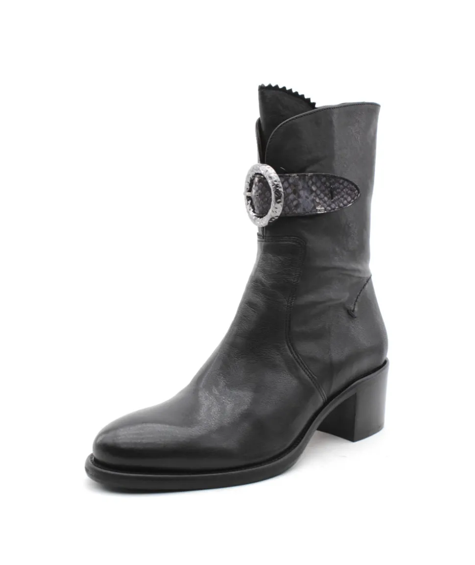La marque Muratti est de retour cette saison avec cette sublime bottine à talon décroché. ROSUREUX S1254B se décline en cuir noir pour un look moderne, féminin et ultra-tendance. Son talon de 5.5 cm vous fera prendre de la hauteur en vous offrant une cambrure idéale pour la journée, tandis que sa tige s’équipe d’un zip intérieur et d’une boucle décorative pour un look toujours plus original.
