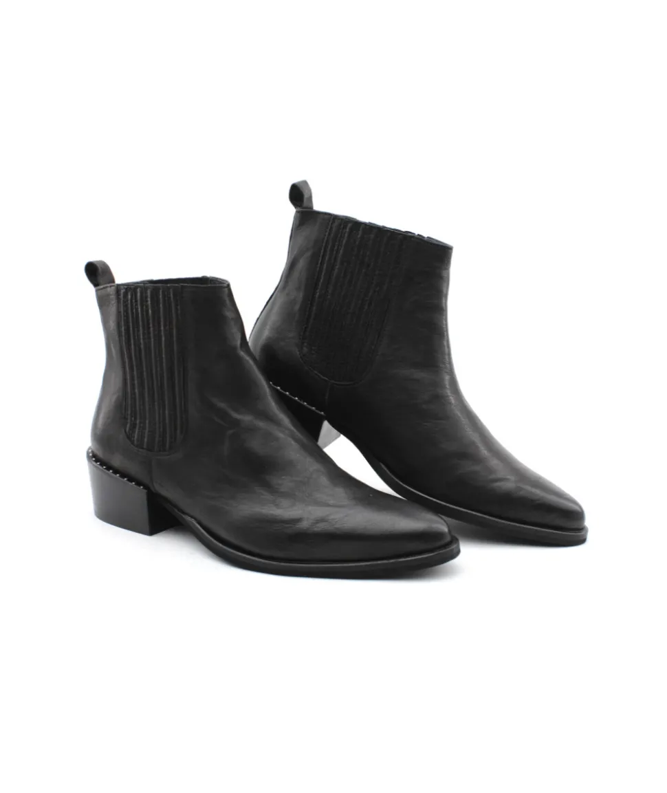 Élégante, chic et indémodable, les bottines 5829/01 en cuir noir de la maison Myma font leurs retour ! Un superbe travail sur les empiècements en cuir au niveau de la tige a été réalisé. On l’aime pour la simplicité qu’elle propose, la praticité d’enfilage des côtés élastiqués et de la hauteur parfaite de son talon. Rien à redire, c’est la paire que chaque femme mérite d’avoir dans son shoesing !