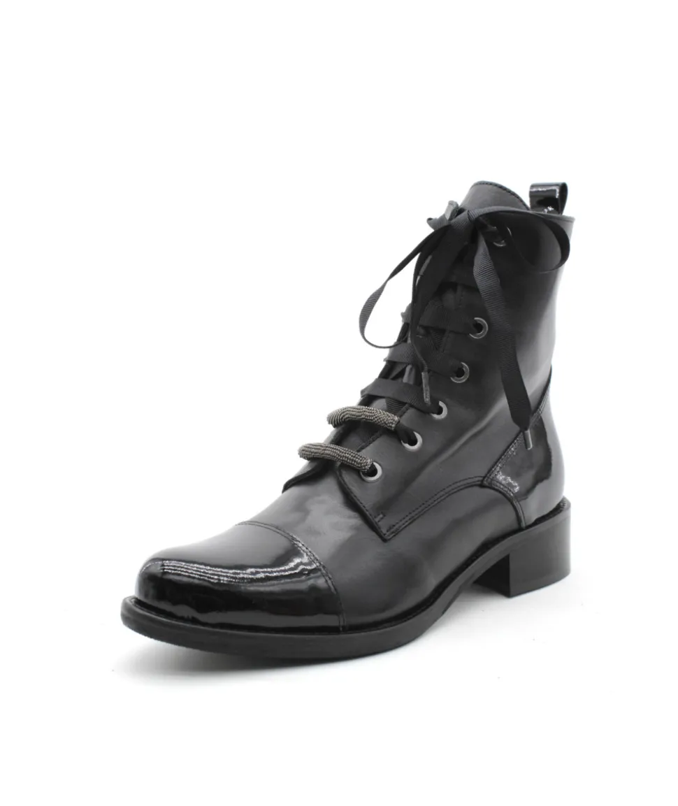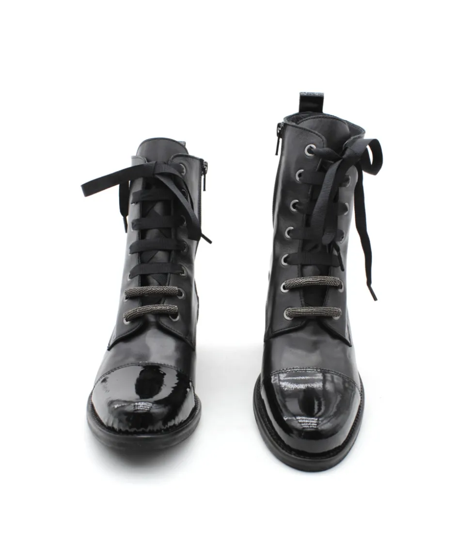 Élégante, chic et indémodable, les bottines 6909/00 en cuir noir de la maison Myma font leurs retour ! Un superbe travail sur les empiècements en cuir au niveau de la tige a été réalisé. On l’aime pour son look original mais indémodable, la praticité d’enfilage grâce aux lacets et son zip latéral ainsi que la cambrure parfaite de son talon. Rien à redire, c’est la paire que chaque femme mérite d’avoir dans son shoesing ! Chez L’Empreinte on est fan de son lacet plat et de ses bijoux.