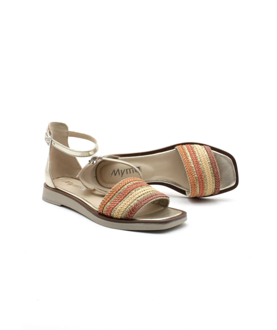 Chic et originale, cette sandale s’habille d’un magnifique textile tressé sur une base orange. La création 7624/01 de la maison française MYMA ne manque pas d’originalité grâce à sa bride avant imposante et son contrefort rosegold élégant accompagné d’une bride cheville réglable. Sa semelle fine en cuir quant-à elle vous apportera beaucoup de souplesse et de confort pour pouvoir vous suivre partout, tous les jours.