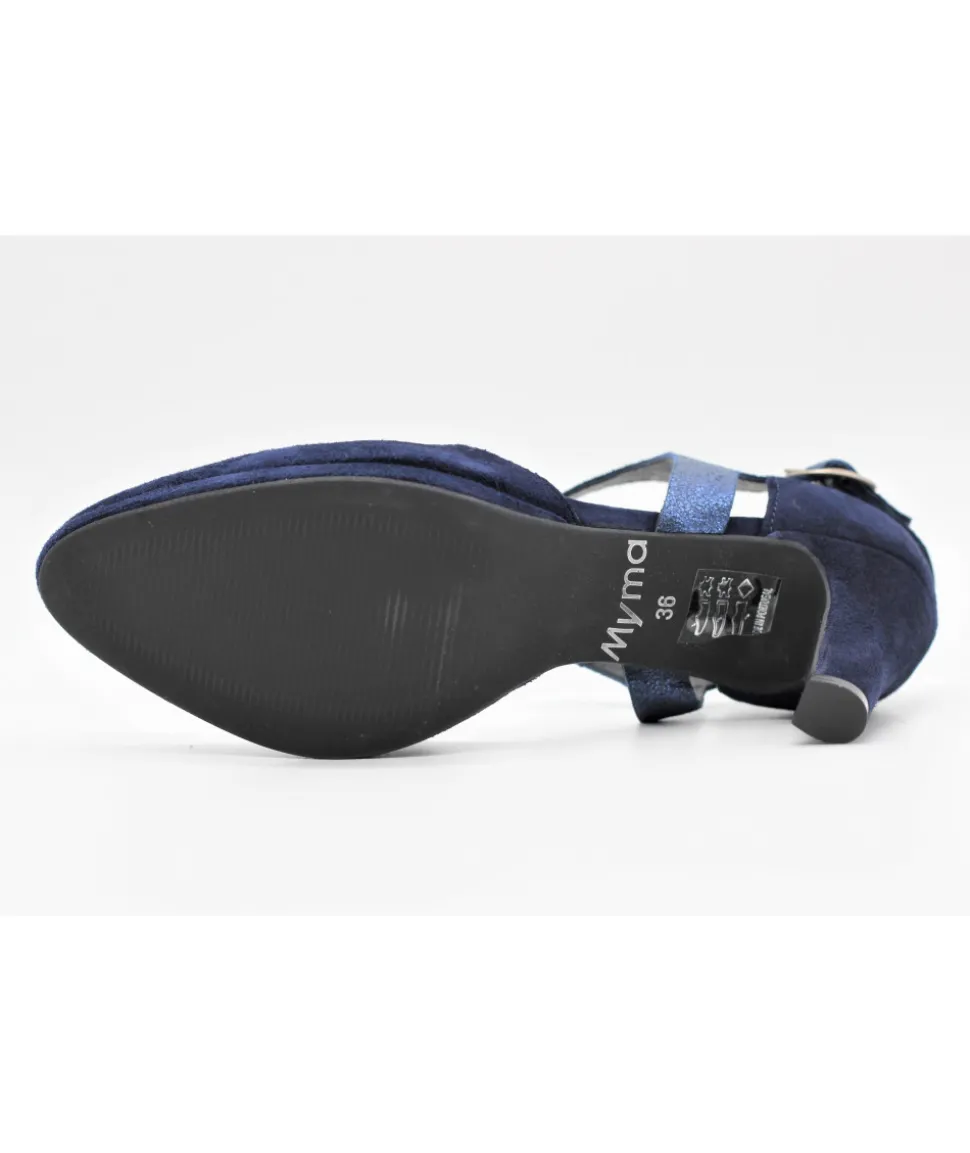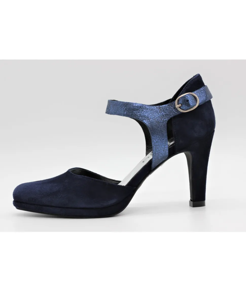 Dessus : Cuir velours MARINEDoublure : CuirSemelle extérieure : ElastomèreTalon : 8 cm – plateau 1 cmFABRICATION POR…