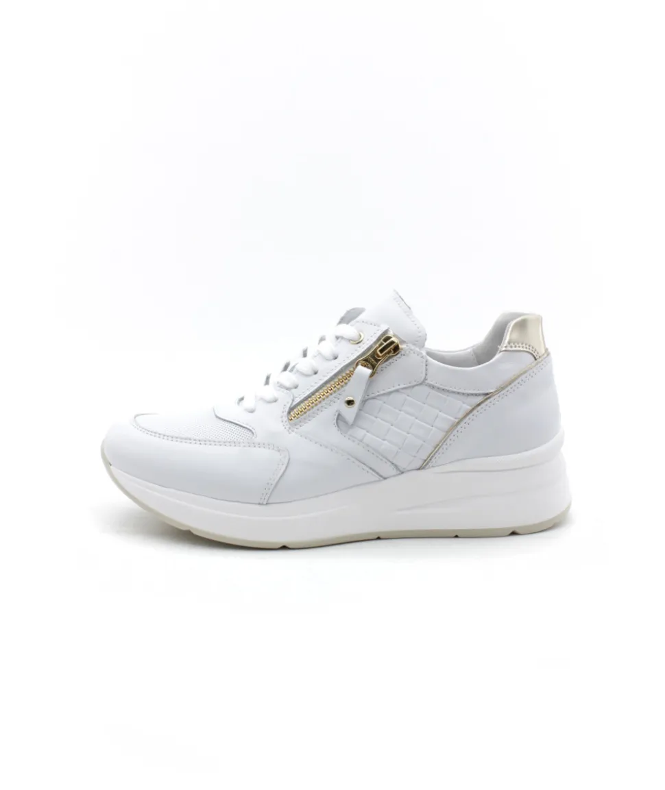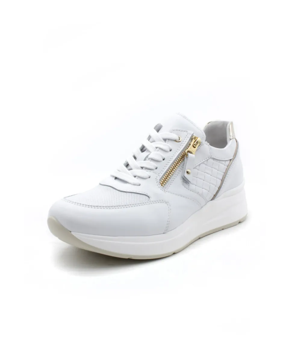 À la recherche d’une basket originale et atypique ? Voici le modèle 06457 de la maison italienne NEROGIARDINI dans son cuir couleur blanc. Assemblée sur une semelle épaisse de 5 cm, cette sneaker s’équipe d’un lacet pour un maintien optimal et d’un zip pour une plus grande facilité d’enfilage. On aime les différentes coupes de cuir, tressées, perforées… et les touches dorées sur le contrefort en rappel de la couleur du zip.
