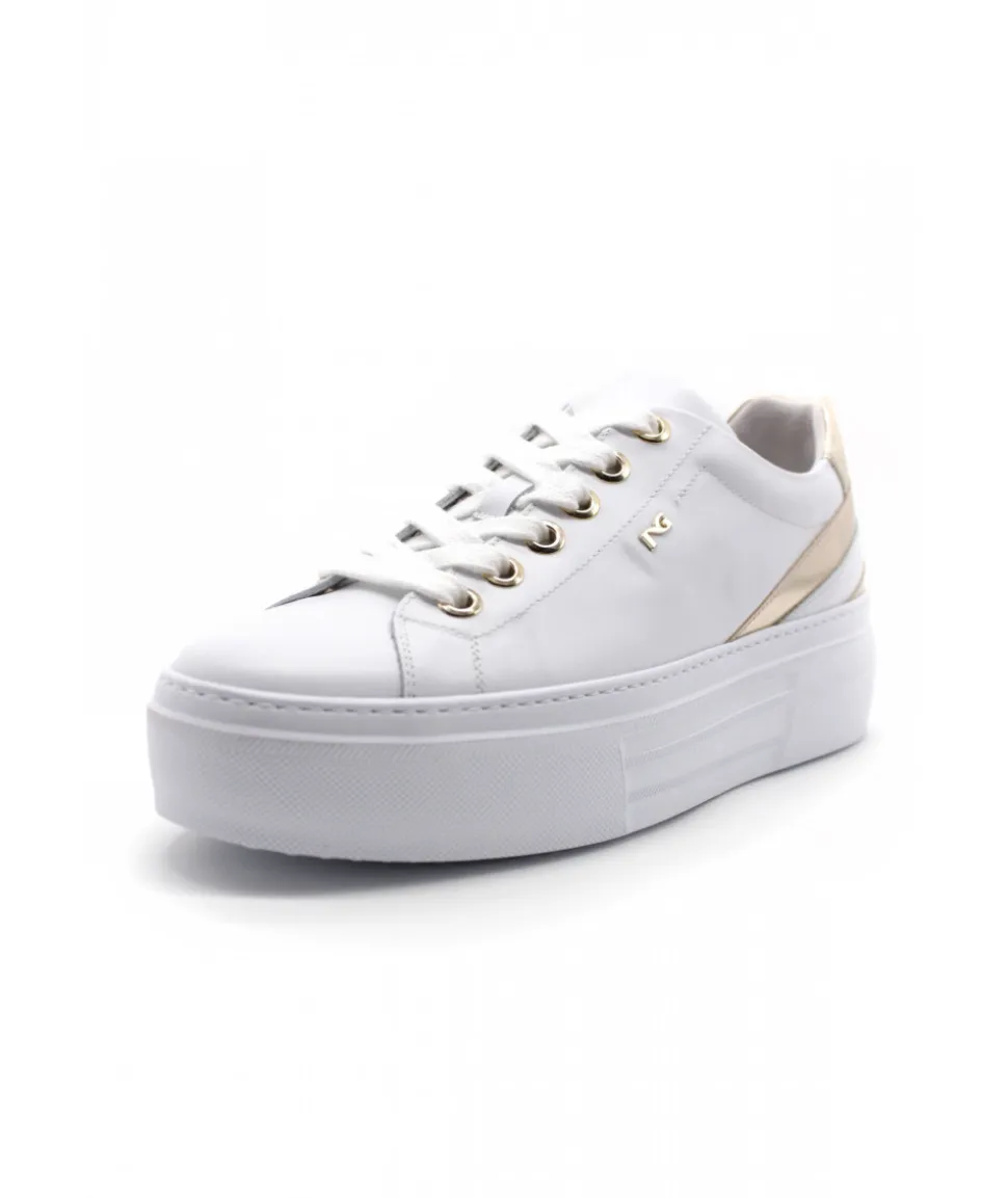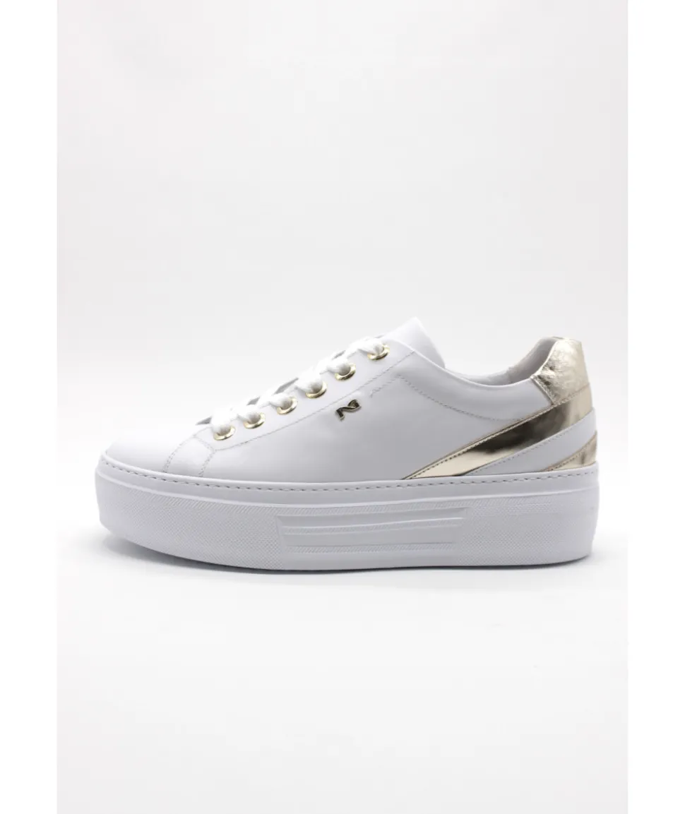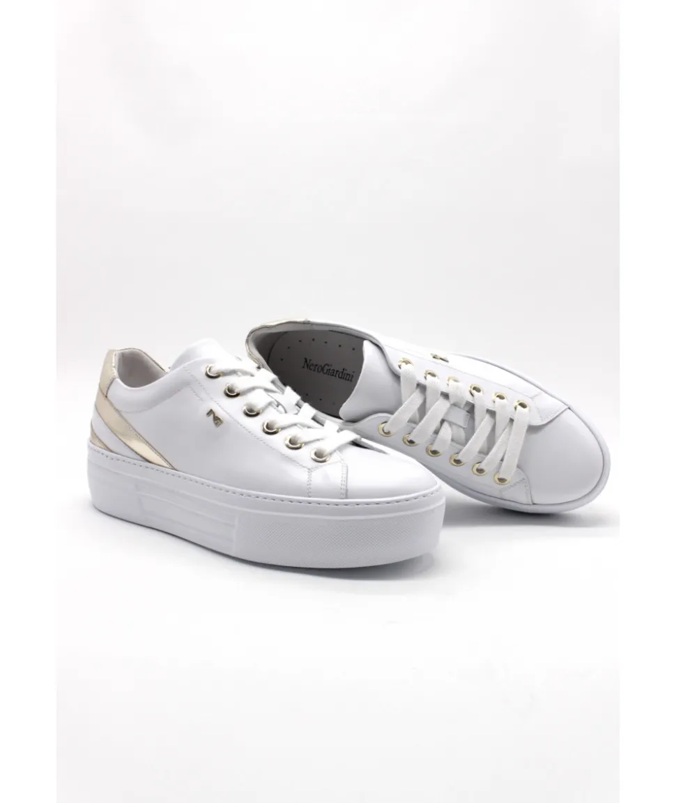 À la recherche d’une basket originale et atypique ? Voici le modèle 15303 de la maison italienne NEROGIARDINI dans son cuir couleur blanc. Assemblée sur une semelle épaisse de 4 cm, cette sneaker s’équipe d’un lacet pour un maintien optimal. On aime son contrefort, ses oeillets et son logo couleur dorée or qui apportent une finition soignée.