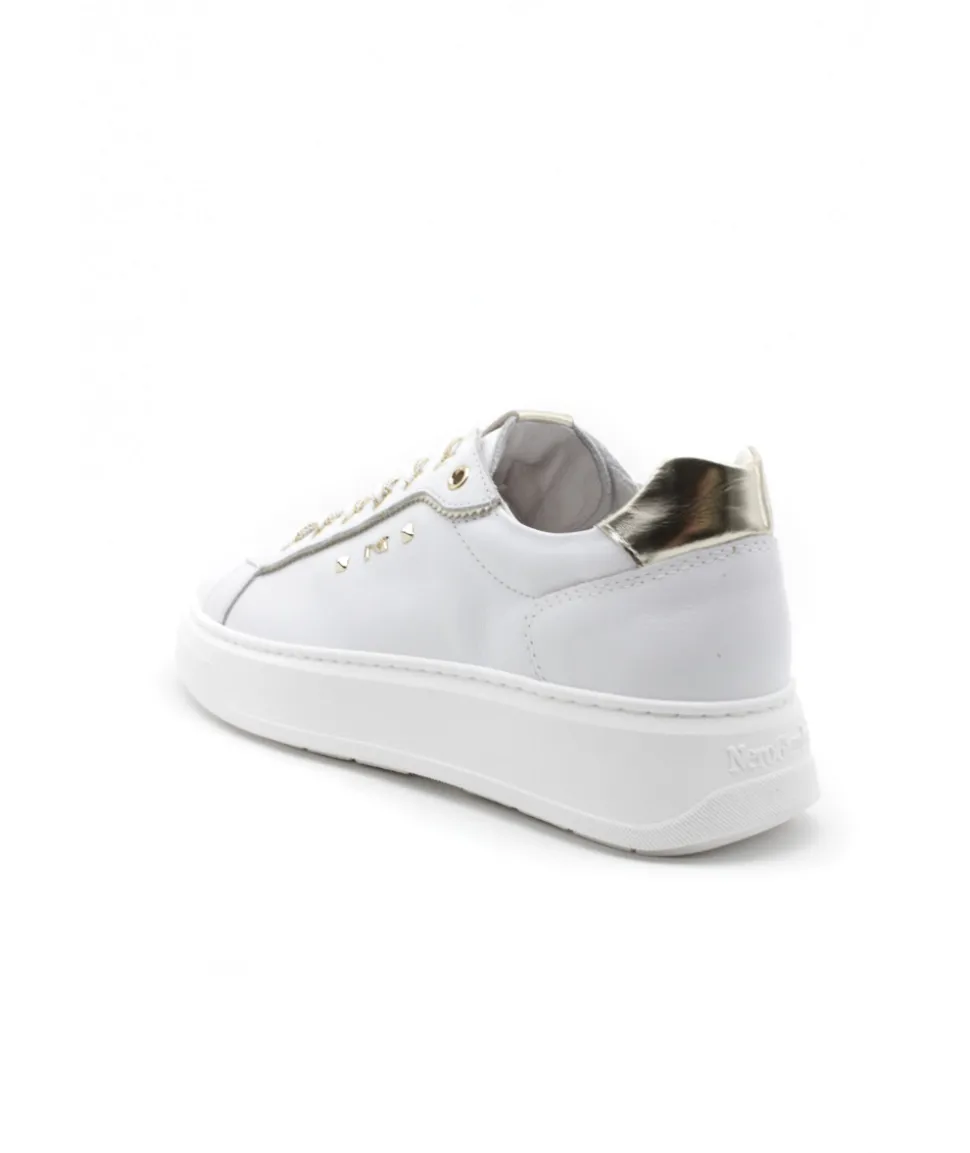 À la recherche d’une basket originale et tendance ? Nerogiardini a créer pour vous la sneakers parfaite avec le modèle E409977D qui s’habille d’un cuir crème accompagné par quelques jolies touches dorées.