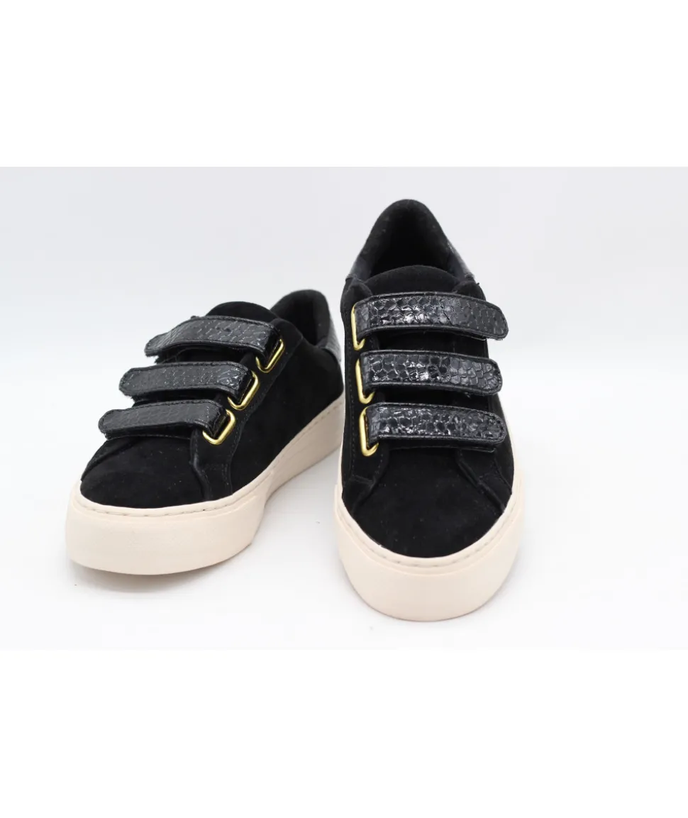 Dessus en cuir velours et synthétiqueFermeture 3 straps Doublure et première textile Semelle plateforme de 3 cm en cao…