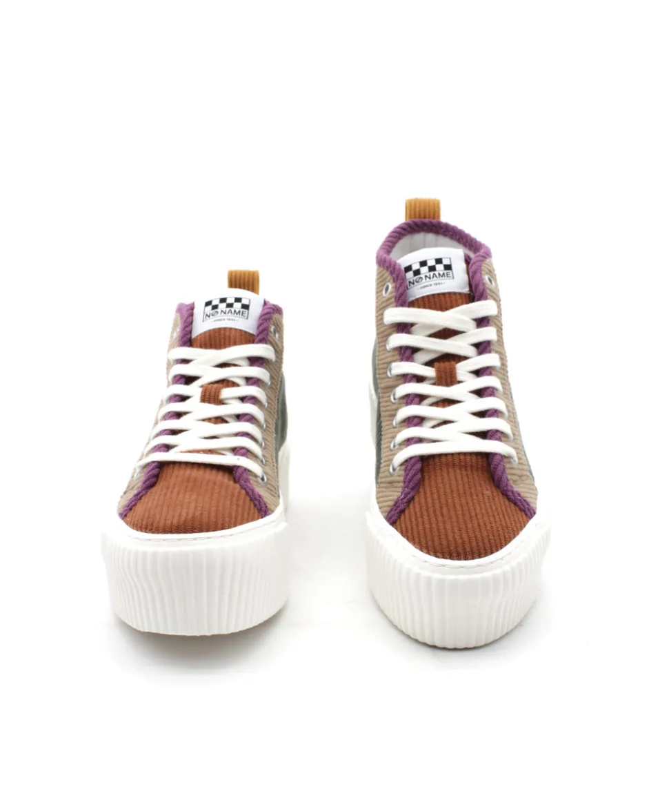 En s’inspirant de ses archives Punk, NO NAME nous dévoile son nouveau modèle l’IRON MID totalement délirant et atypique avec sa grosse semelle plateau et son revêtement en velours côtelé multicouleur. Kaki, beige, camel et violet, rien ne fait vous fait peur ? Pas de doute, avec ce modèle ça sera vous la modeuse au top ! La douceur du textile vous réserve un accueil chaleureux à chaque enfilage, un bonheur…