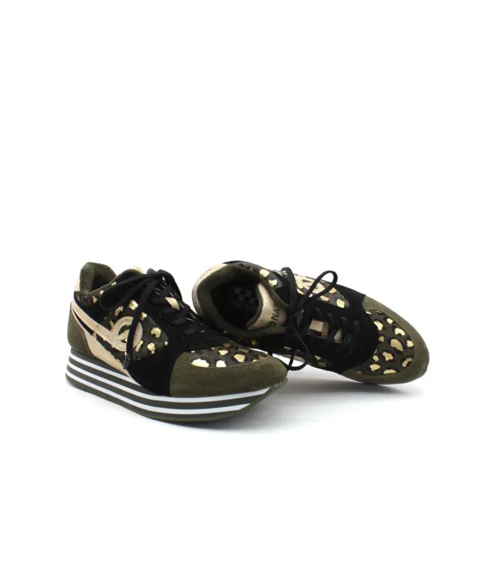 La PARKO JOGGER a traversé les époques en devenant une référence de NO NAME grâce à son style bien à elle. La recette de cette longévité ? Des lignes fluides tirées du streetwear des années 90 pour un résultat 100 % vintage. Une sneaker qui devrait faire de l’oeil à toutes les nostalgiques adeptes d’une silhouette urbaine ultra féminine. Pour cette nouvelle saison, la basket s’habille d’un cuir couleur vert olive sur une base noir pour un look simple et intemporel. On aime les rappels de la marque en platine sur le contrefort et le côté pour un look affirmé, le tout associé avec des empiècements originaux léopard. Légère et confortable, vous ne lui résisterez pas !