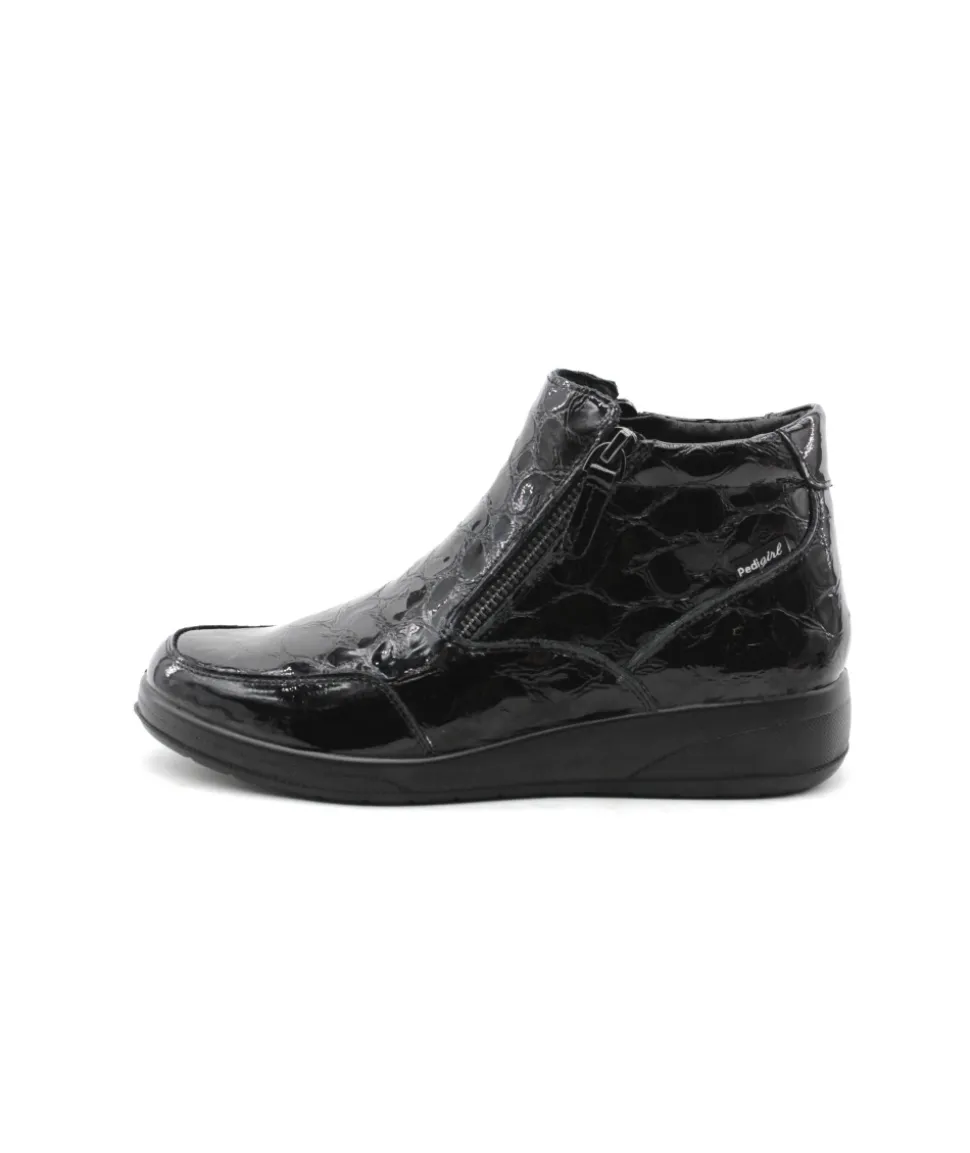 Modèle immanquable de Pedi girl, Suzy Amo en cuir vernis noir, doté de deux fermetures glissières sur chacun des côtés de votre paire, la facilité à mettre votre chaussure est garantit ! Vous pouvez également changer la semelle afin d’y mettre la vôtre au besoin. Un modèle tout en cuir dont vous n’arriverez plus à vous passer ! N’attendez plus et laissez-vous tenter…
