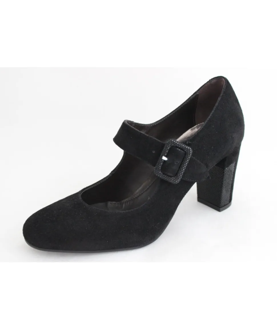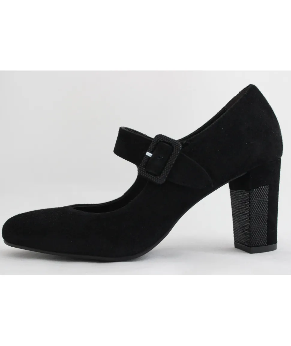 Dessus : Cuir velours NOIRDoublure : CuirSemelle extérieure : ElastomèreTalon : 7.5 cmFABRICATION PORTUGALRéférenc…