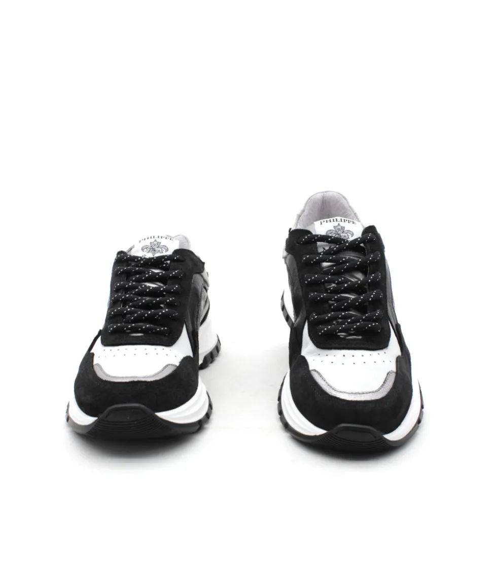 Pari réussi pour PHILIPPE MORVAN, qui vous propose une chaussure au look sport chic : Le modèle 6009/01, stylé et avant-gardiste s’habille d’un mix de matières en passant par le cuir lisse, le nubuck ainsi qu’un cuir façon pailleté. Le tout dans des tons blanc et noir assemblé sur une semelle running blanche. On aime son style audacieux et l’originalité du mix de matière. Sa semelle en caoutchouc absorbera les chocs pour un confort à toutes épreuves tandis que son lacet vous offrira un maintien optimal ! Plus de doutes c’est elle qu’il vous faut !