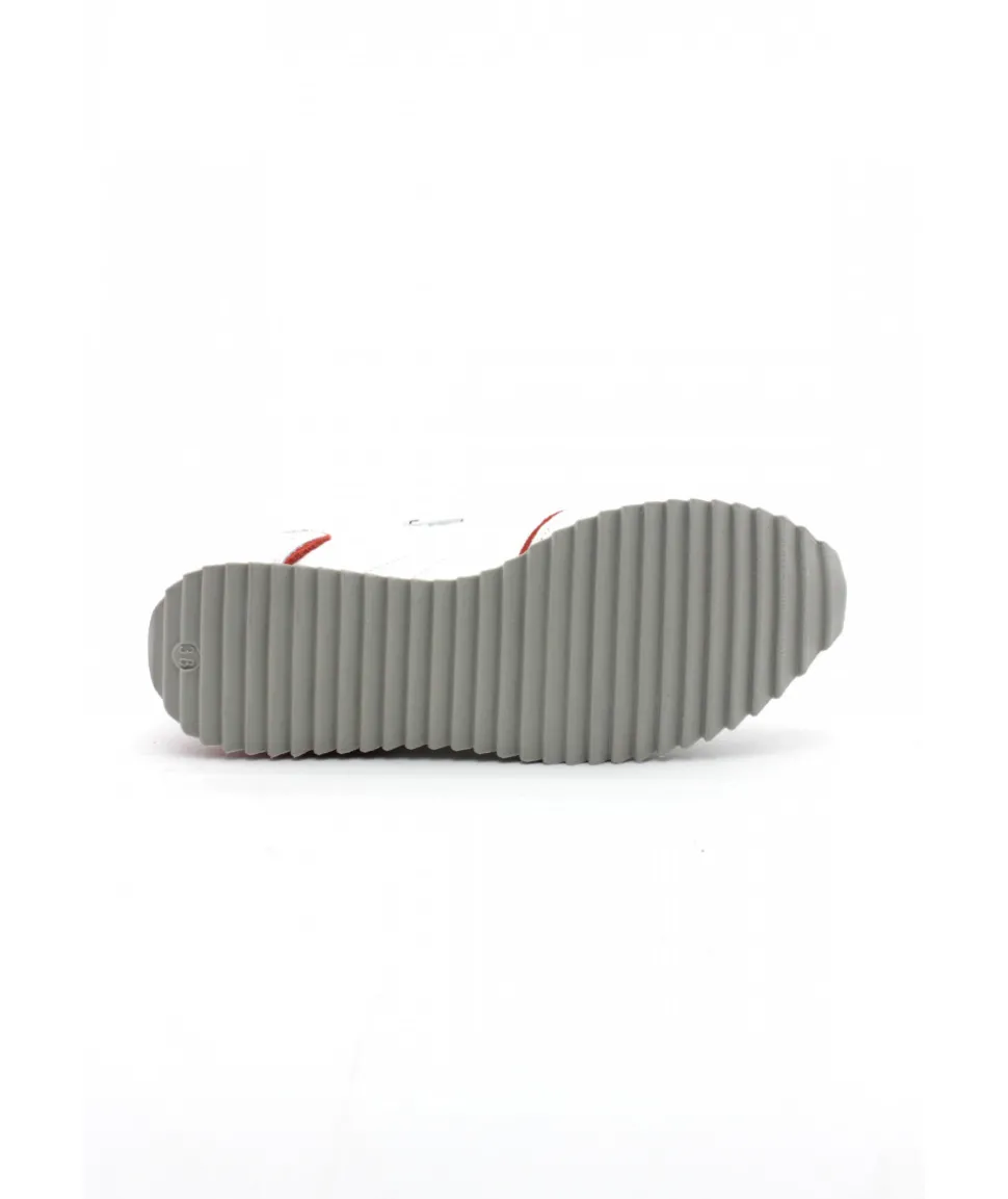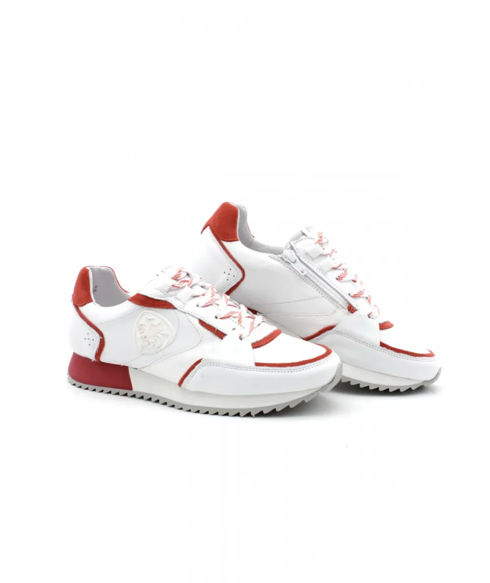 Pari réussi pour PHILIPPE MORVAN, qui vous propose une chaussure sport dans un look élégant : Le modèle RAVOX, stylé et avant-gardiste qui s’habille d’un mix de cuir et de textile blanc et rouge sur une épaisse semelle blanche.