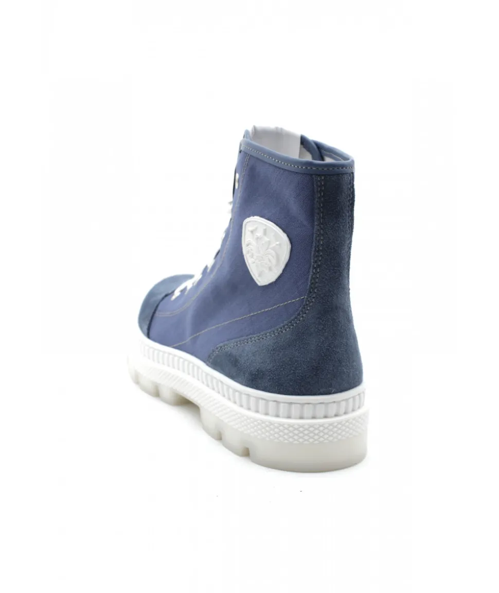 Sublime basket montante hors norme. Voici la dernière création de la marque PHILIPPE MORVAN avec son modèle TOOST 006 dans son cuir et textile bleu jean. Une chaussure audacieuse qui ne manque pas de pep’s et d’originalité !