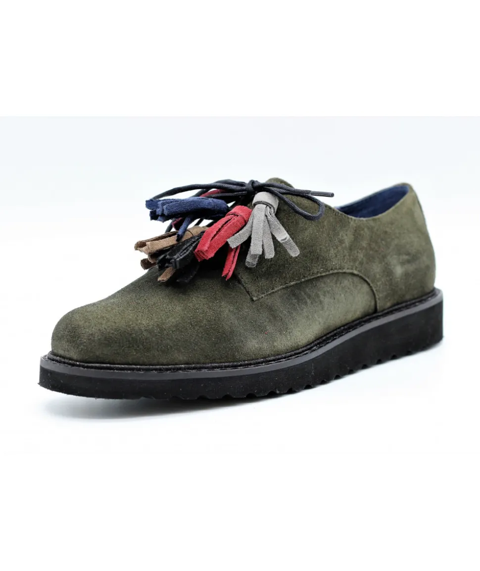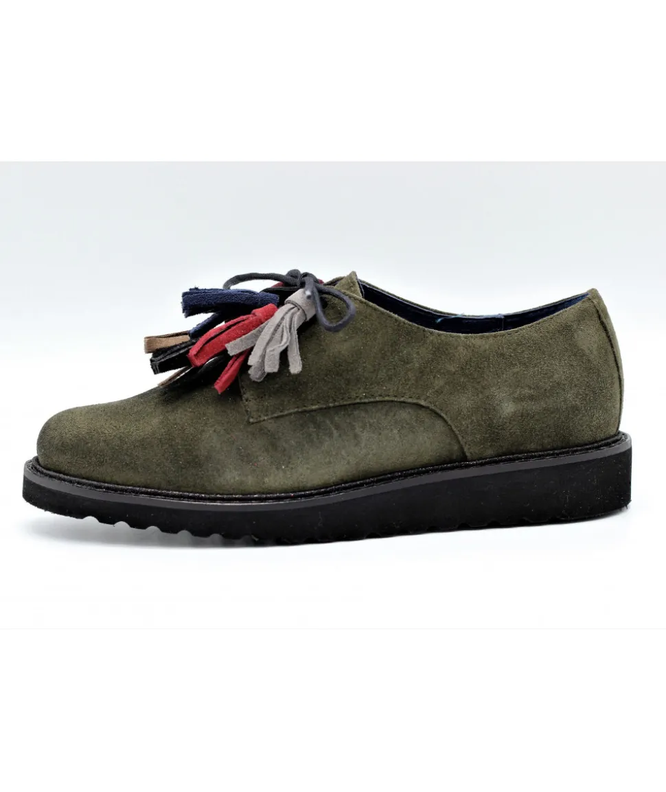 Dessus : Cuir velours KAKI ou cuir vernis NOIR.Doublure : CuirSemelle extérieure : ElastomèreTalon : 2.5 cmFABRICATION…