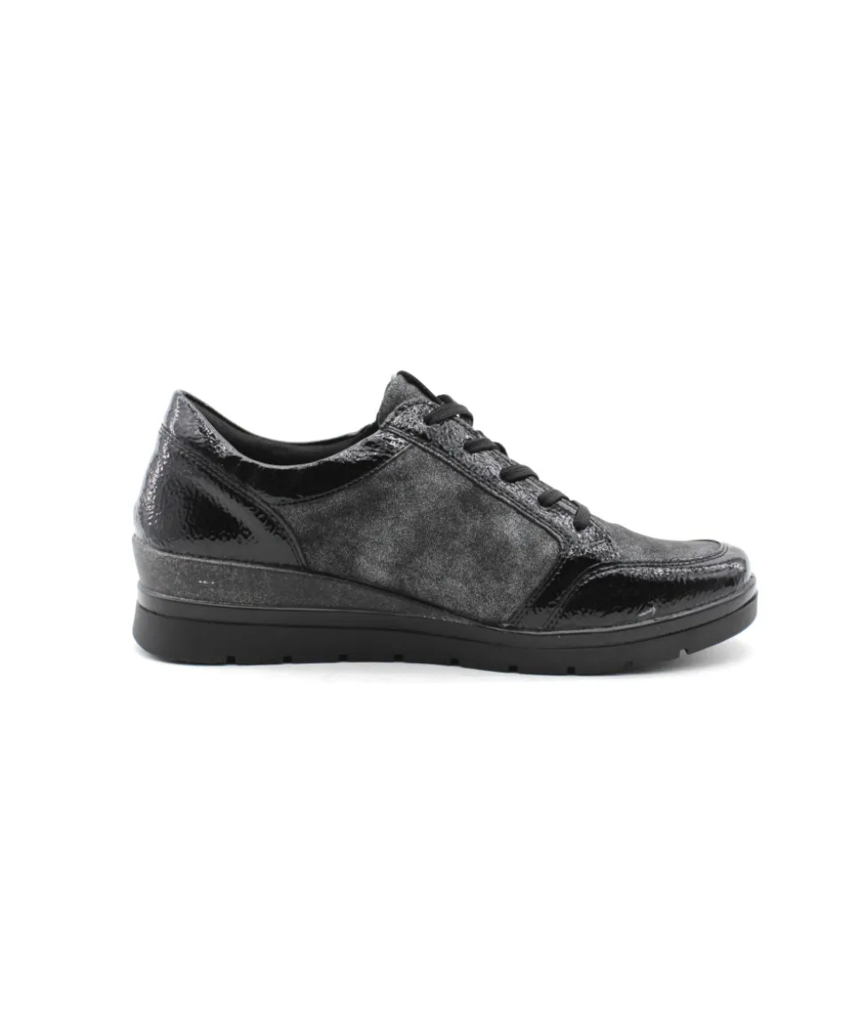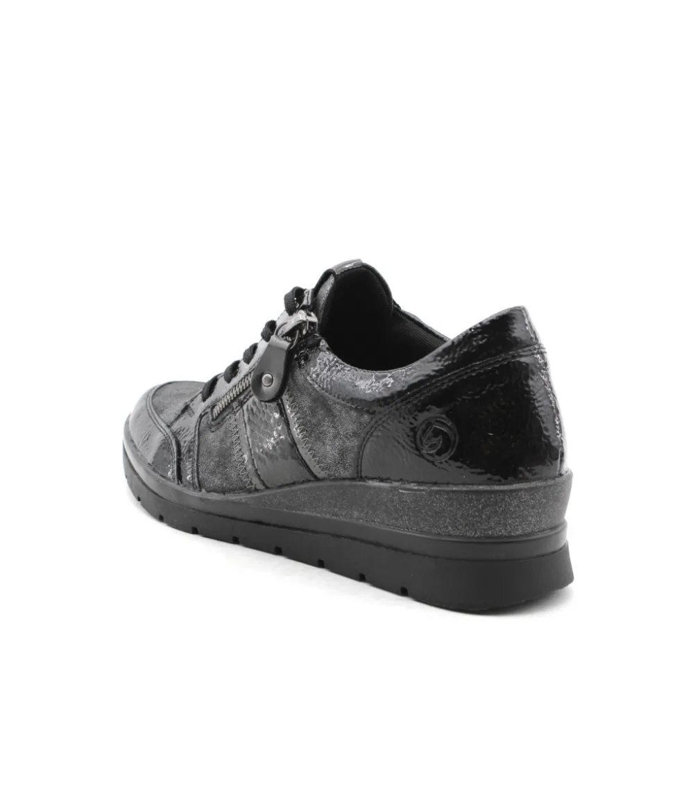 Pour se sentir libre, adopter Remonte !!! Remonte R0705-03 est une tennis noir. Cette tennis Remonte est facile à chausser grâce à son lacet et sa fermeture éclair. Ce modèle de tennis Remonte est doté d’une semelle amovible matelassée. Idéale pour le quotidien avec son petit talon compensé.