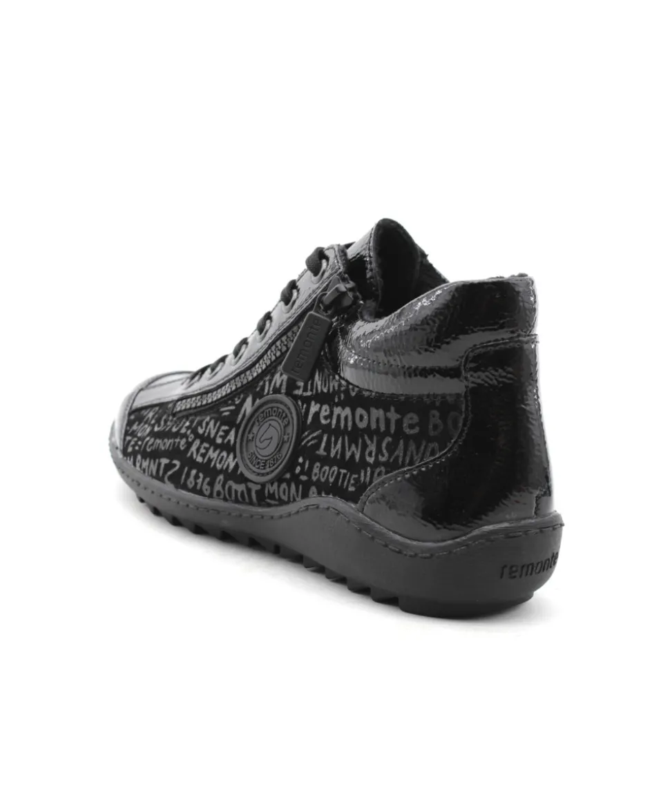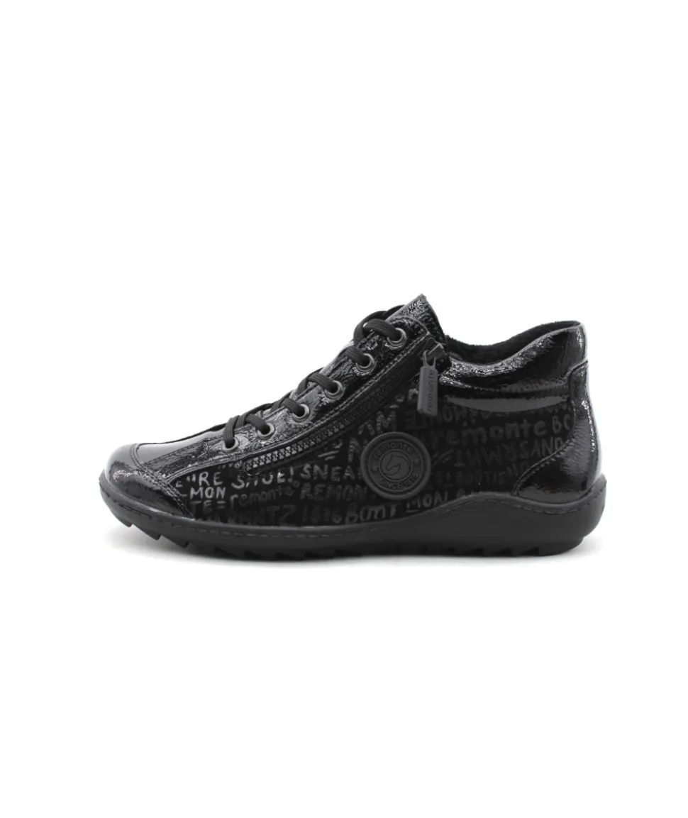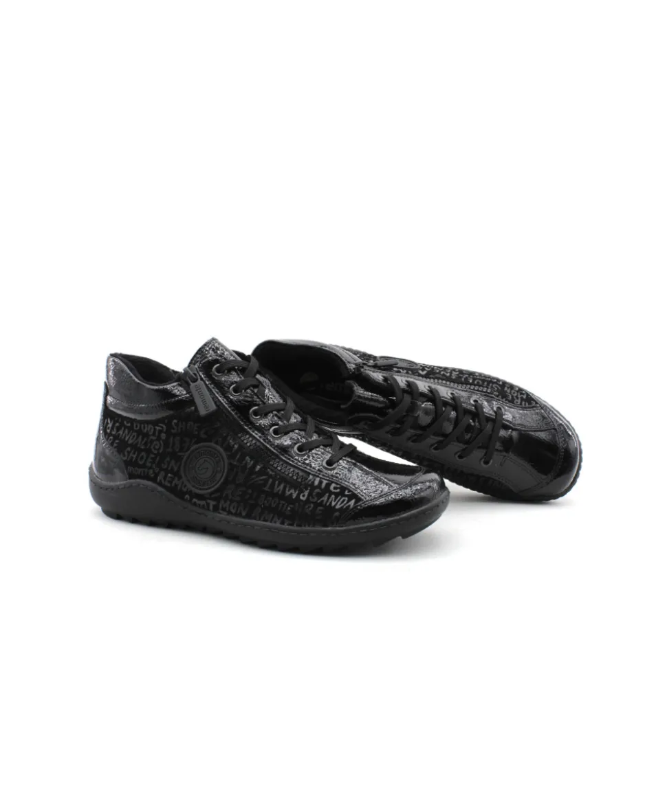 Remonte R1477-01 est une tennis femme en cuir et textile noir. Cette tennis Remonte est facile à chausser grâce à son lacet et sa fermeture éclair. Ce modèle de tennis Remonte est doté d’une semelle amovible matelassée. Idéale pour le quotidien, cette tennis s’adaptera parfaitement avec toute votre garde robe. Idéale pour cette saison avec sa semelle crantée, elle embarque avec elle la technologie Lite’N Soft : Plus de largueur sur la chaussure, semelle amovible, soutien de voute plantaire, légère et souple.
