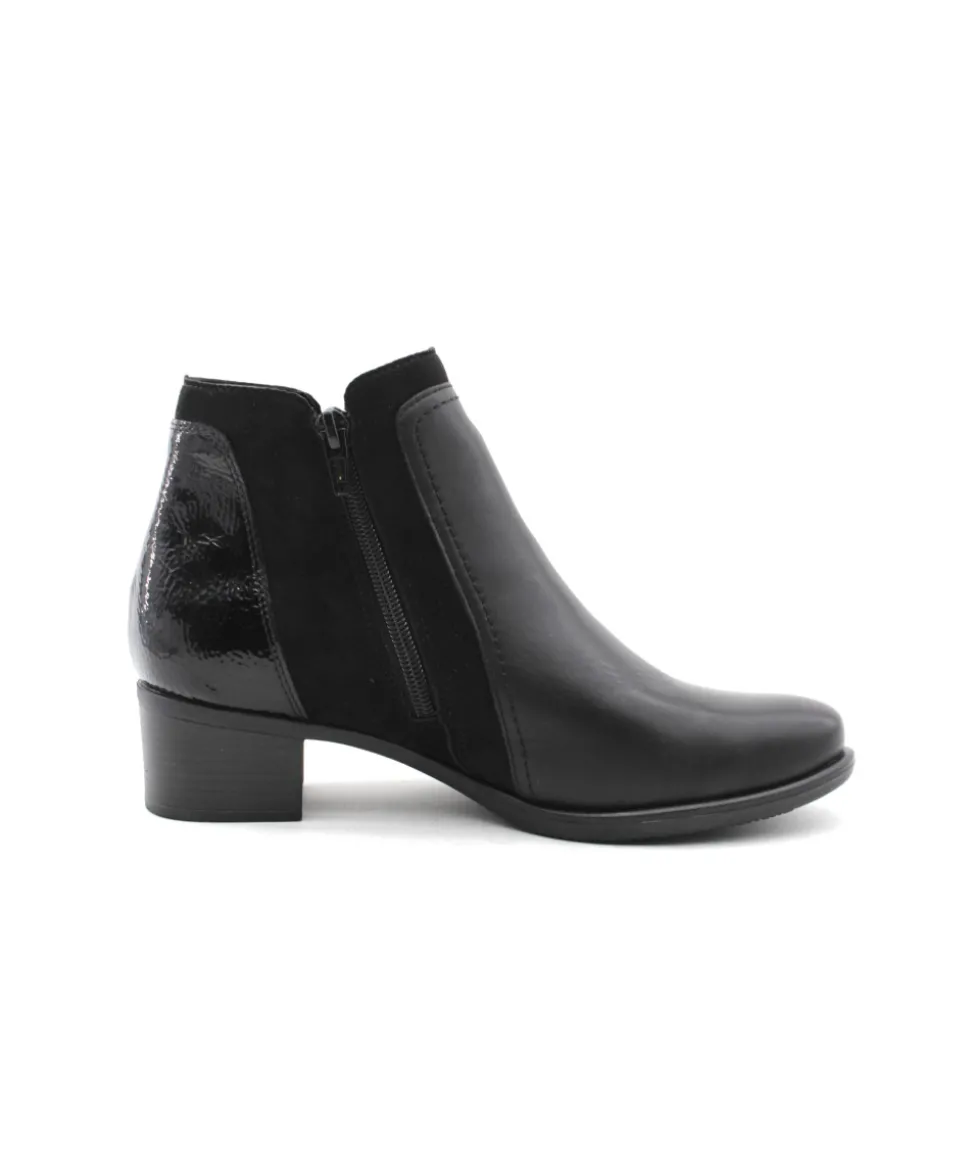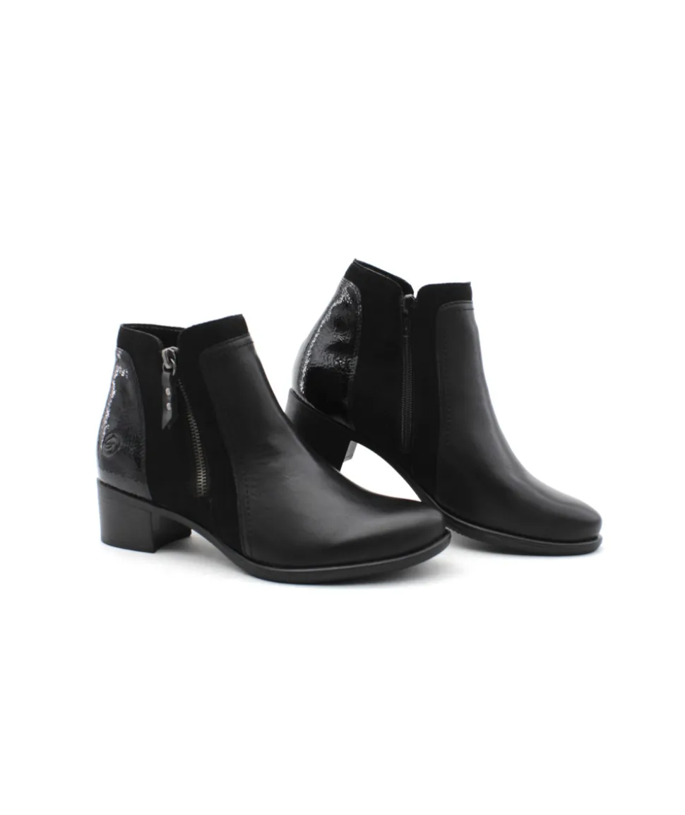 Remonte R5172-03 est une bottine femme en cuir et textile noir. Cette bottine Remonte est facile à chausser grâce à sa fermeture éclair. Cette bottine Remonte est doté d’une semelle amovible et d’un talon détaché. Parfaite pour accompagner vos tenues d’hiver. Elle embarque avec elle la technologie Remonte Soft : matières respirantes, semelle qui amorti les chocs, résiste à l’humidité….