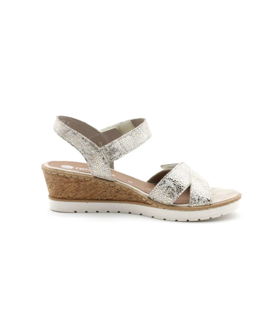 Un modèle qui ne manque pas d’arguments pour vous séduire, voici la nouvelle sandale R6252-91 de la maison Allemande Remonte. Une sandale en cuir or platine équipée d’une bride avant réglable par velcro, une bride cheville pour un maintien optimal, elle-même réglable par un velcro. On l’aime également pour sa légèreté, sa souplesse sur l’avant qui épouse la démarche et son confort ! Un sans faute !