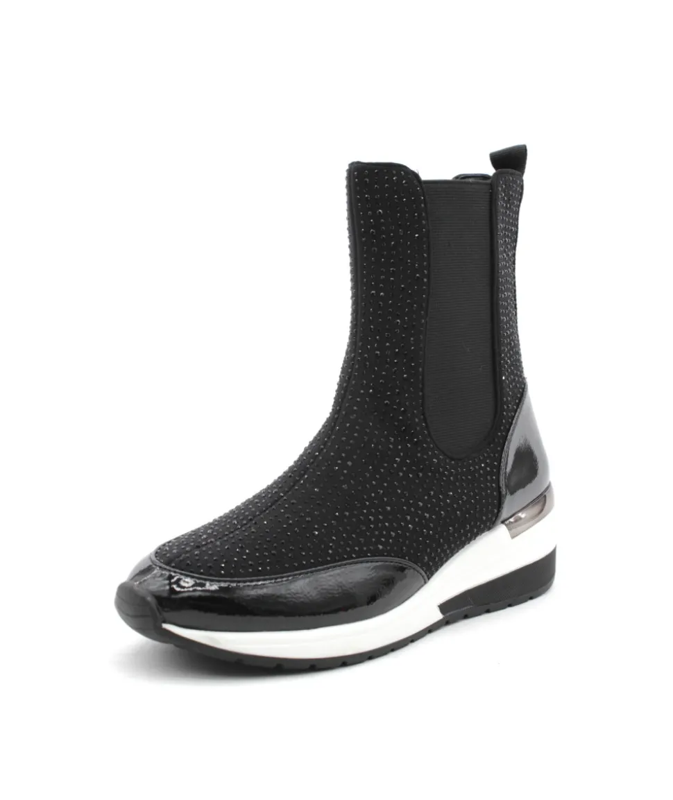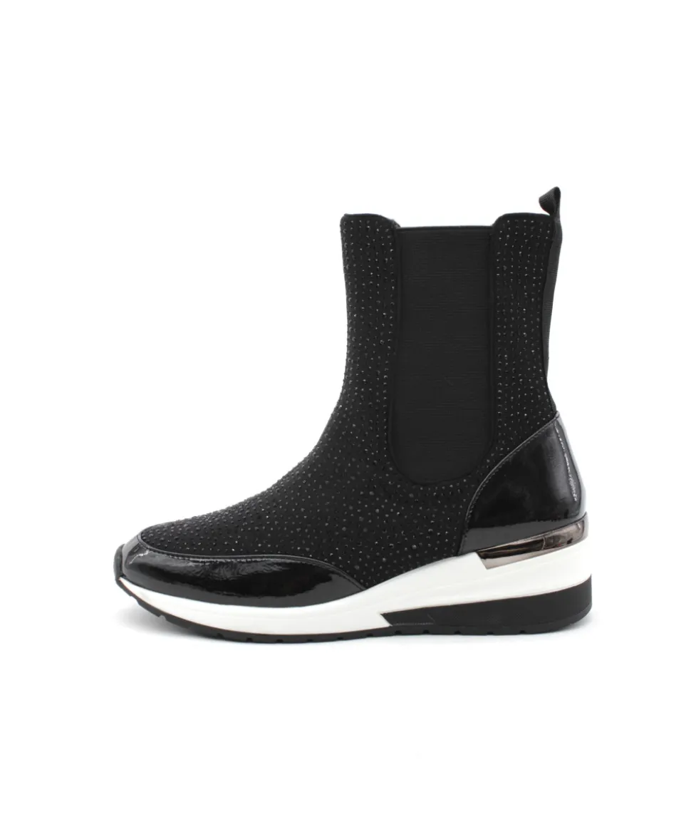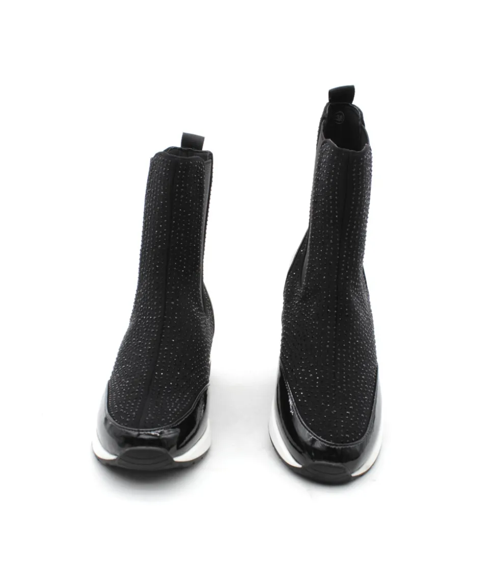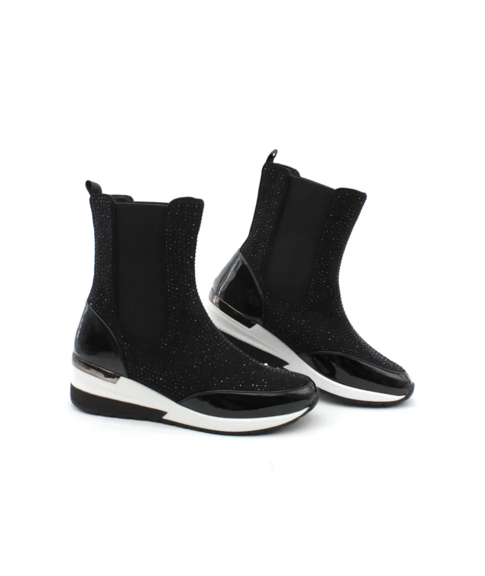 Alerte aux modeuses ! Voici un modèle qui ne manque pas d’originalité avec son lycra couleur noir et sa semelle compensée. IMAGE de Reqins est la nouveauté à adopter dans son shoesing. Légère, confortable et ultra-tendance, ces baskets montantes ont tout pour elle. Sa sensation de porter des chaussettes vous offrira un bien-être incomparable tandis que son look inimitable associé à ses paillettes et son contrefort vernis vous apporteront beaucoup d’élégance.