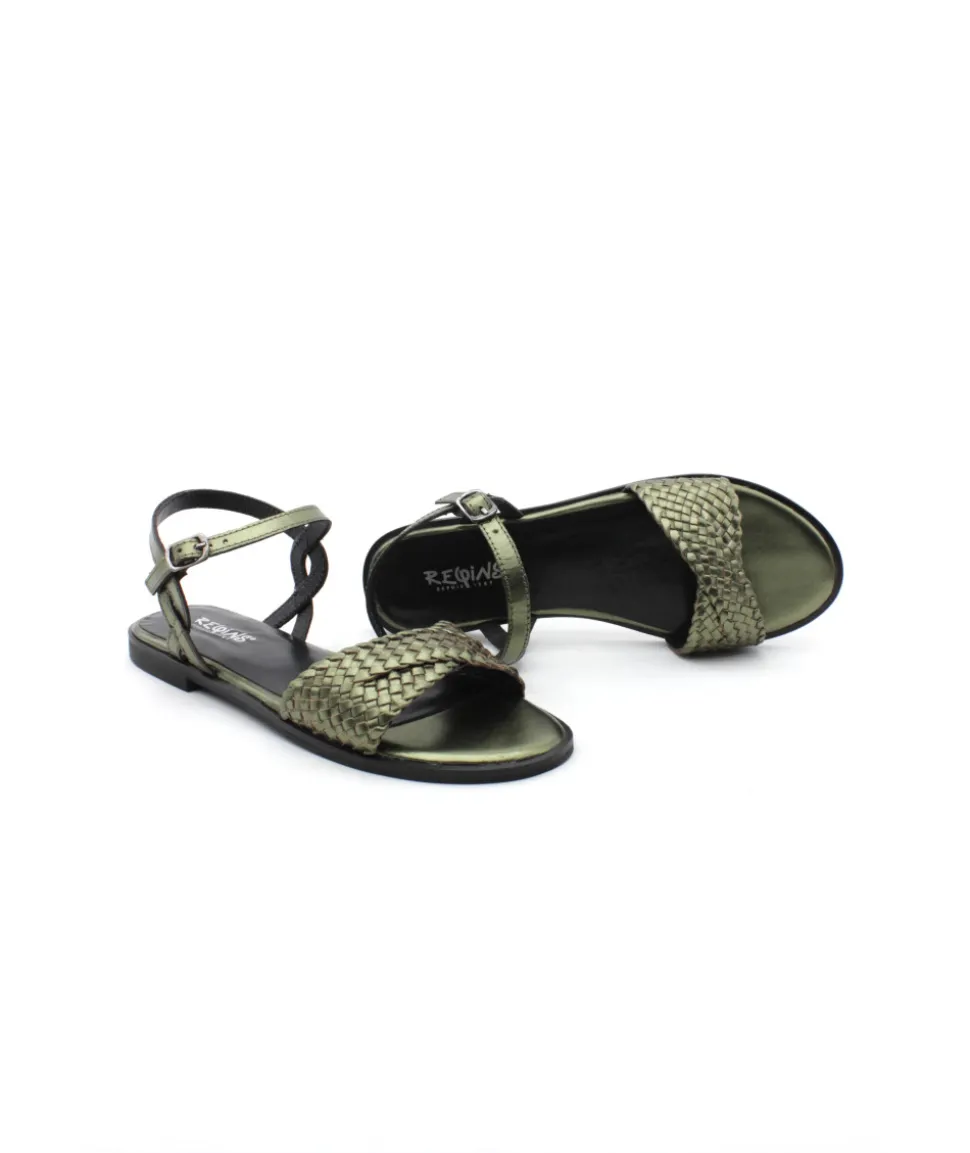 Sandales plates confortable, souple et légère ? Ne cherchez plus, REQINS a conçu pour vous le modèle parfait ! Avec sa semelle en gomme, son petit talon, sa bride avant en cuir tressé vert olive et sa bride cheville réglable, cette sandale est le bon compromis pour cet été en alliant confort, amorti, légèreté. On aime les jolies finitions apportées comme les croisements de lanières.