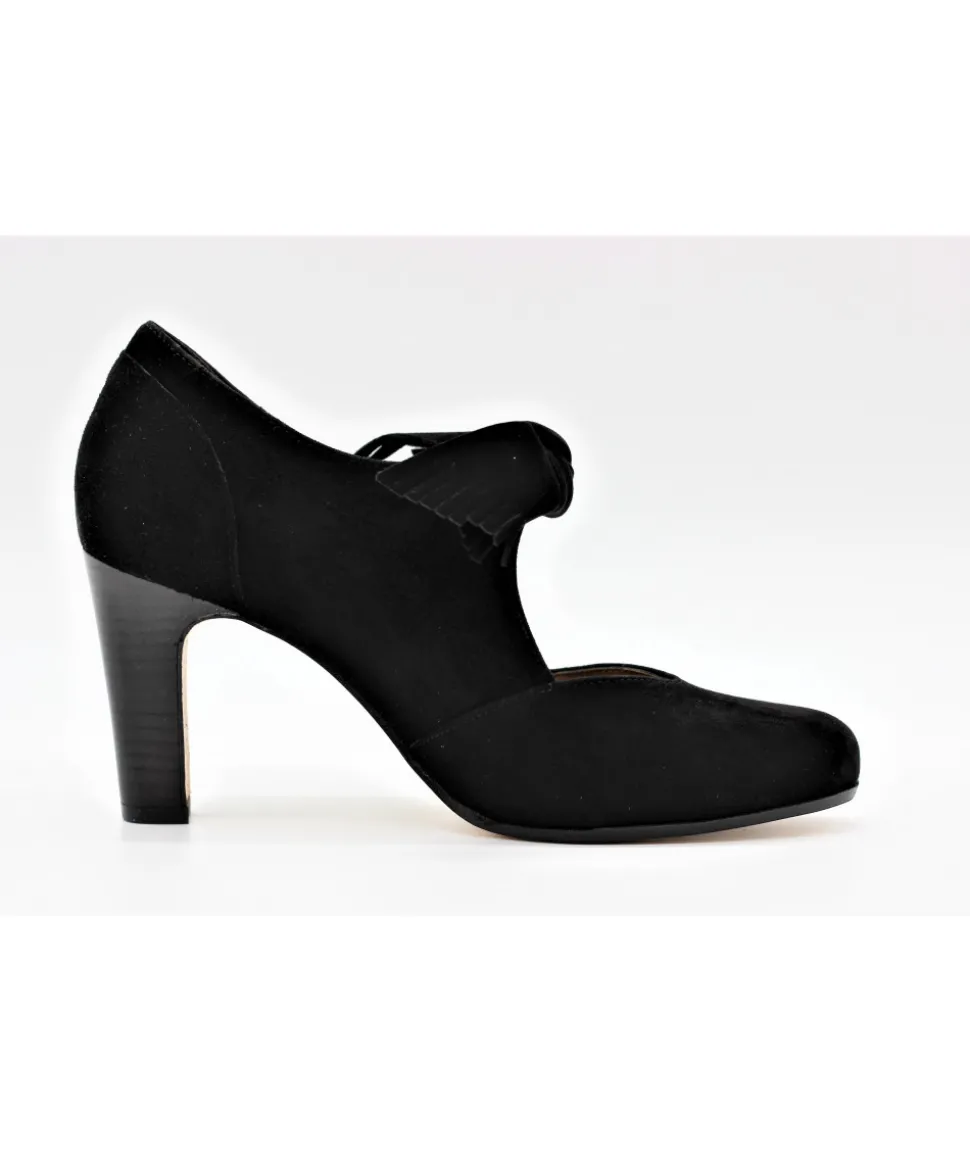 Dessus : Cuir veloursDoublure : CuirBride coup de pied fermée par une pression et ornée d’un noeudSemelle extérieure …