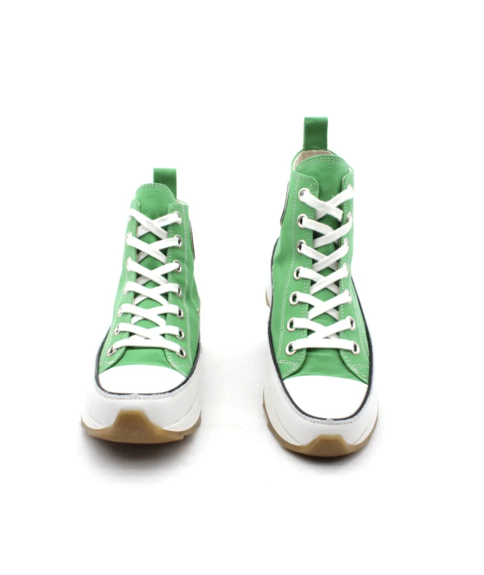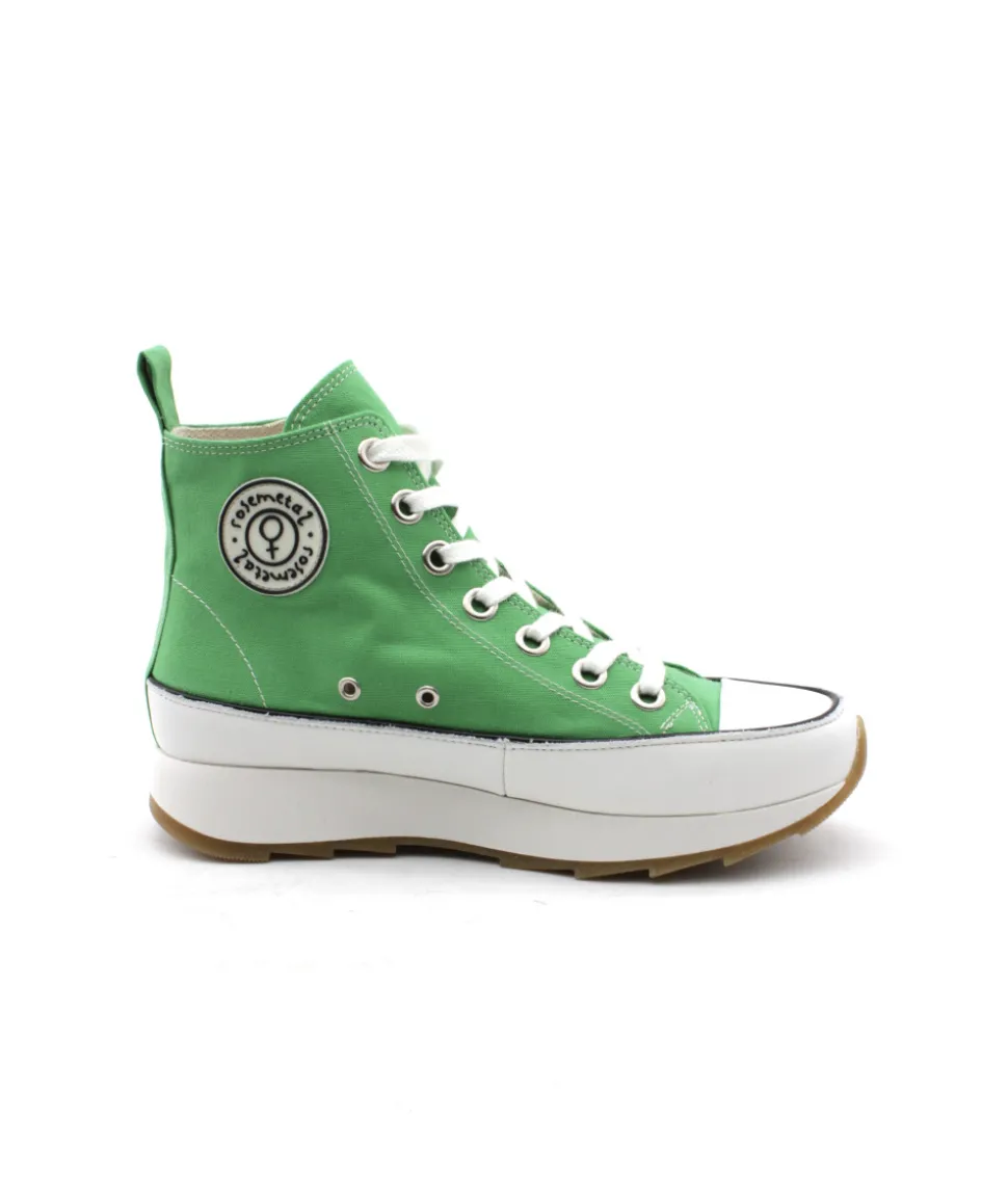 FRASNE H0756A, une basket ultra-originale pour un look tendance, voici la création de ROSEMETAL. Sur une grosse semelle compensée et une palette de couleur disponible, la mode est à vos pieds ! Une semelle blanche imposante, un dessus en toile blanc, vert et orange… pas de doute c’est le must-have de cet saison ! Confortable et looké, on aime le logo sur le côté pour le petit plus !